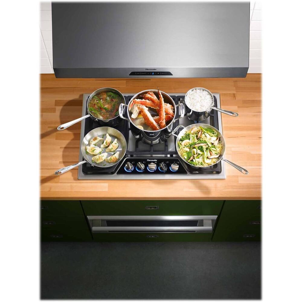 I love my Thermador cooktop. The heat is very even and consistent. I like the feature that lets you turn the knob to any flame setting and it lights. No need to pause at the lighting detent. The grates feel heavy duty and the steel knobs feel durable in hand.