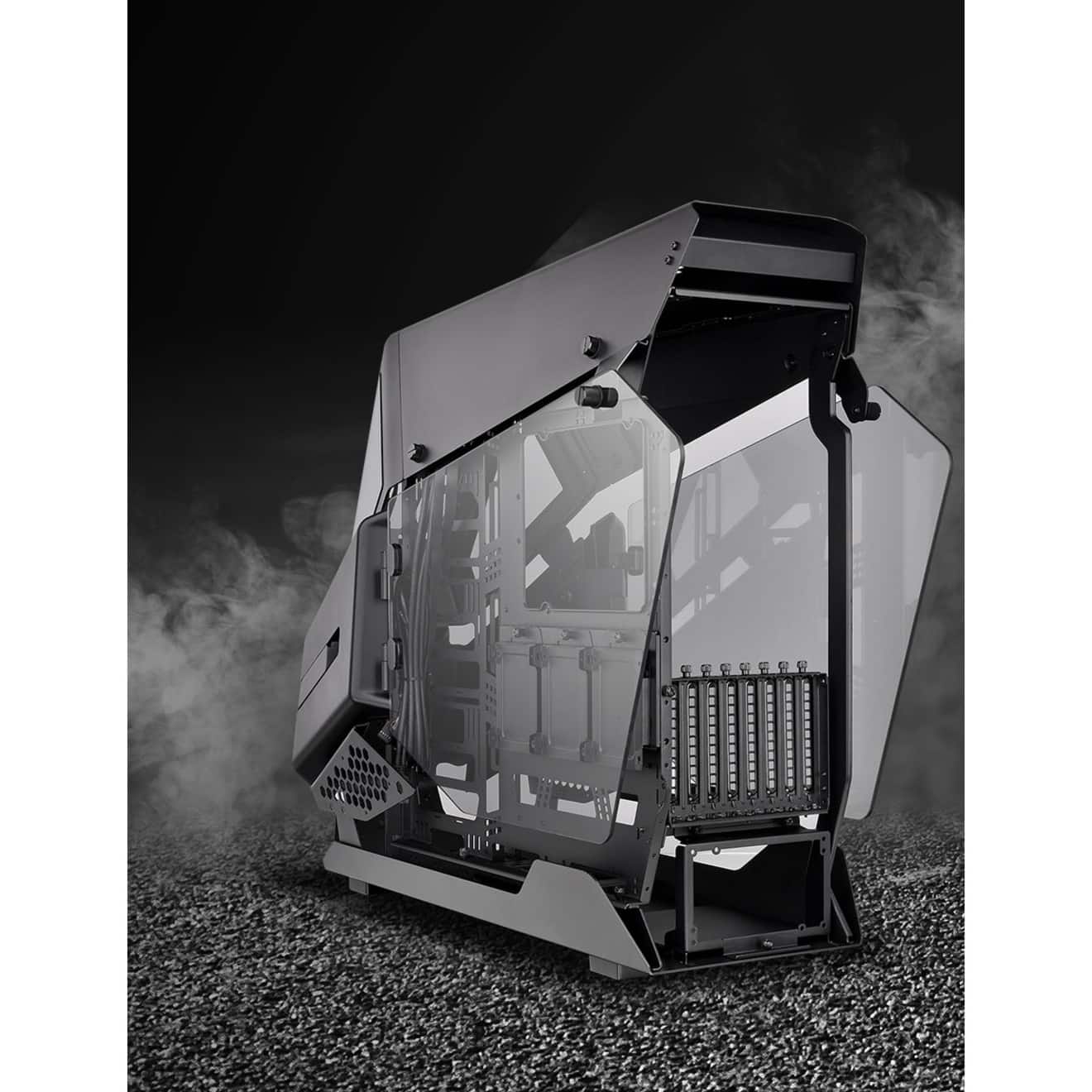 The computer case is huge, and the vent-grate on the top is relatively (Pron. like relatingly) beautiful.