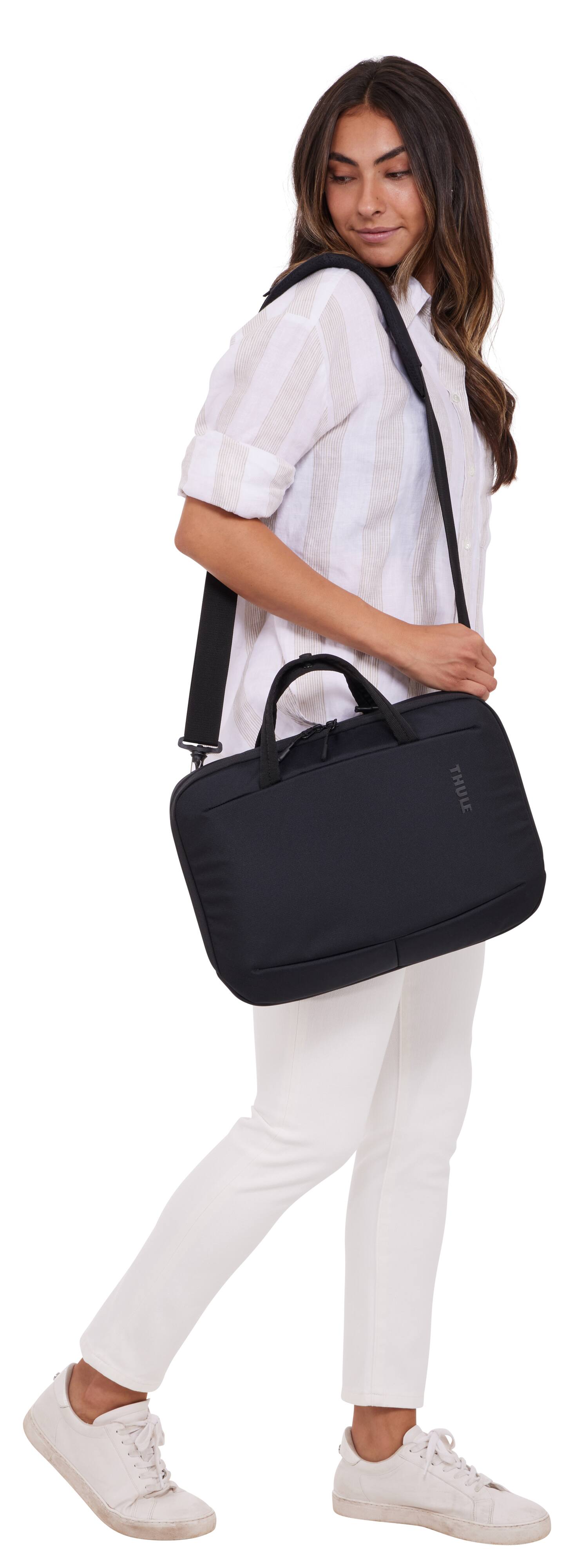 The Thule recycled material attache brief for the 14-inch MacBook Pro is a stylish and eco-friendly choice for protecting and carrying your laptop. Crafted from recycled materials, it not only offers durability but also contributes to sustainability efforts. The briefcase’s sleek design provides a snug fit for the MacBook Pro, keeping it secure during transport. It features ample padding and compartments to safely store accessories like chargers, cables, and documents. The adjustable shoulder strap and comfortable handles make it easy to carry, whether commuting or traveling. For those prioritizing both style and sustainability in their laptop accessories, the Thule attache brief is a standout option.