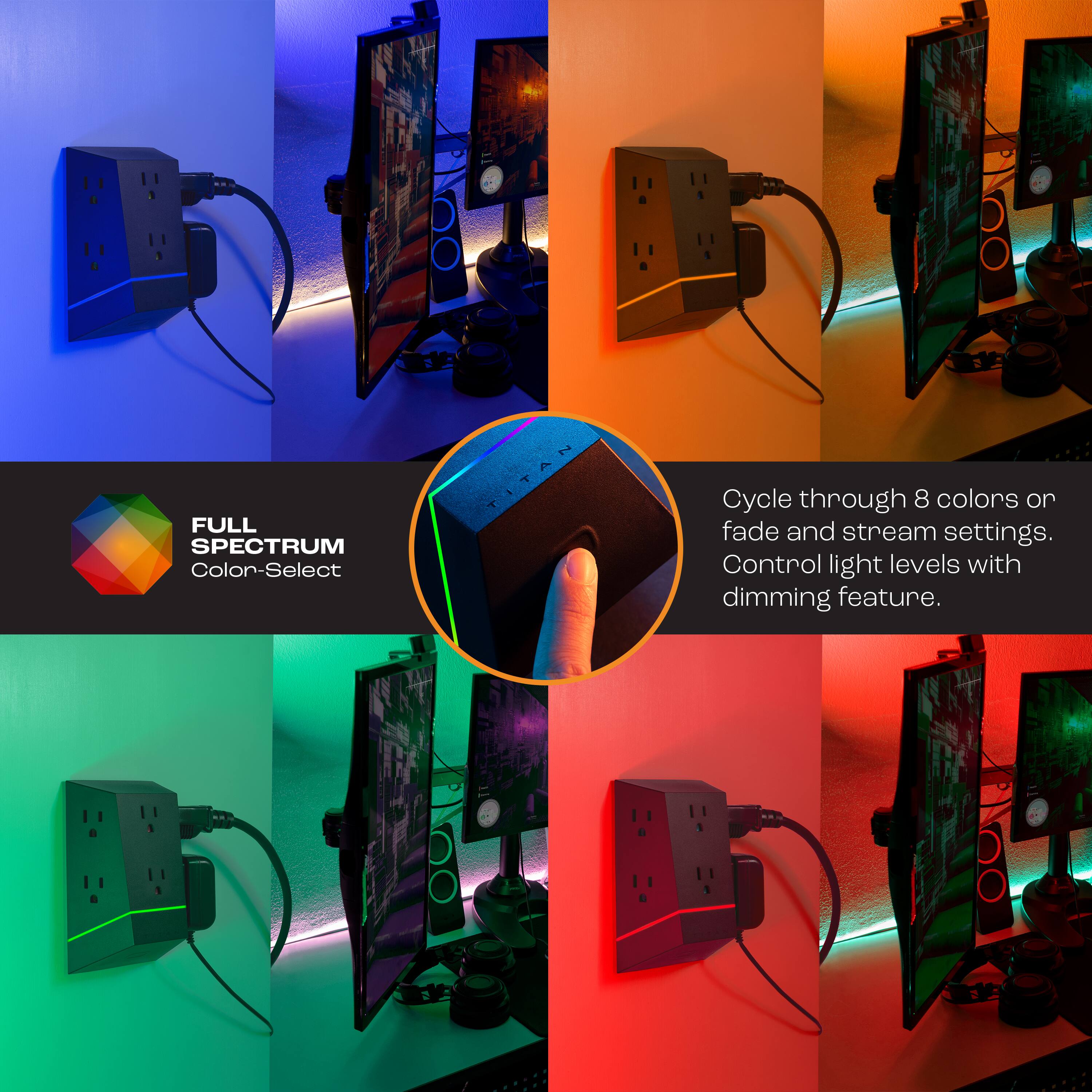 Titan - 6 outlet Wall Tap surge protector-RGB LED