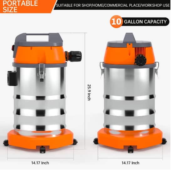 This shop vac is a total game-changer! The 8HP motor has serious suction power - handles everything from garage dust to water spills like a champ. I love the wet/dry/blow functions, so I'm not juggling multiple tools. The 45 ft reach and crevice nozzle make cleaning tight spots super easy, and the 360° wheels glide smoothly everywhere. The 35L capacity means less emptying too. Blower mode is surprisingly strong for leaves and workshop cleanup. Built tough and easy to use. Highly recommend for home, garage, or car!
