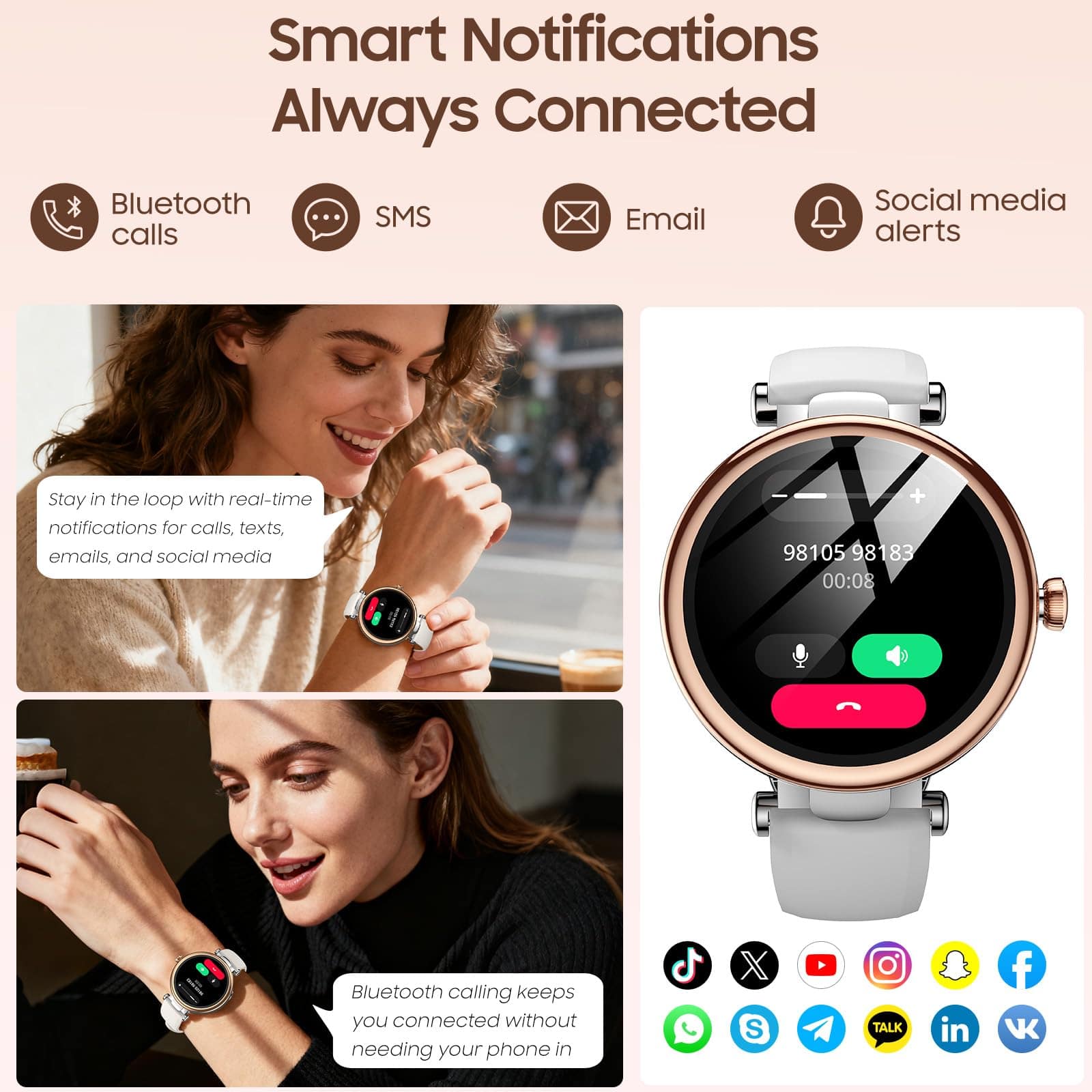 I bought this watch for my wife who is a professional and wanted something a bit fancier than the normal black boxes. She was using a Sense 2 that cost us hundreds of dollars so we were a bit skeptical of this one for under $50. We have been pleasantly SURPRISED. The watch is beautiful and the screen is extremely bright and clear. The watch charges quickly and the battery has lasted her a week. Her phone notifications are clear and reliable (a problem we've had with other watches). The fitness trackers are comparable to the Fitbit Sense 2 including HR, Sleep, O2, an stress. It logs every workout we've tried so far. This is an amazing value.