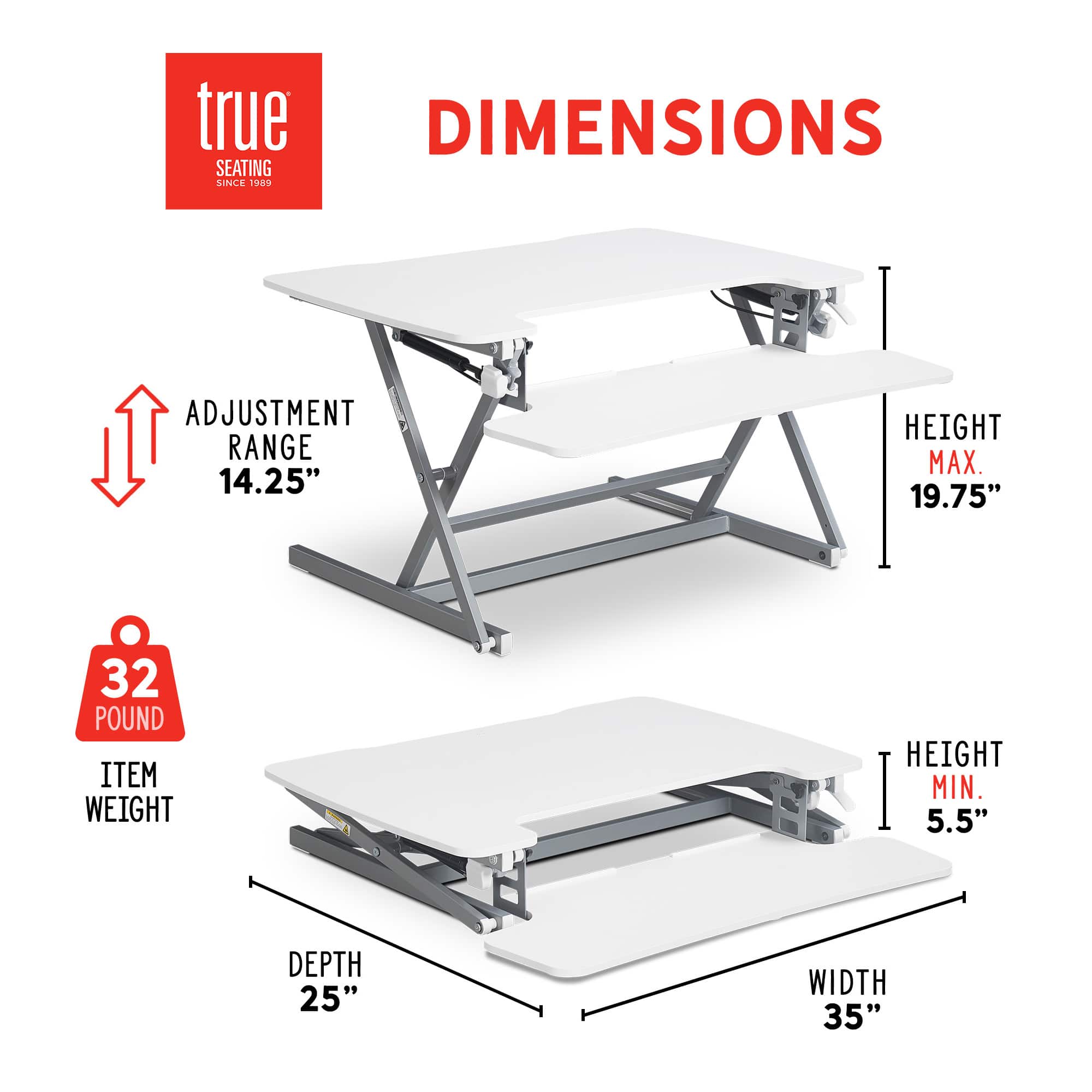 This review is from True Seating - Ergo Height Adjustable Standing Desk Converter, Large - Black