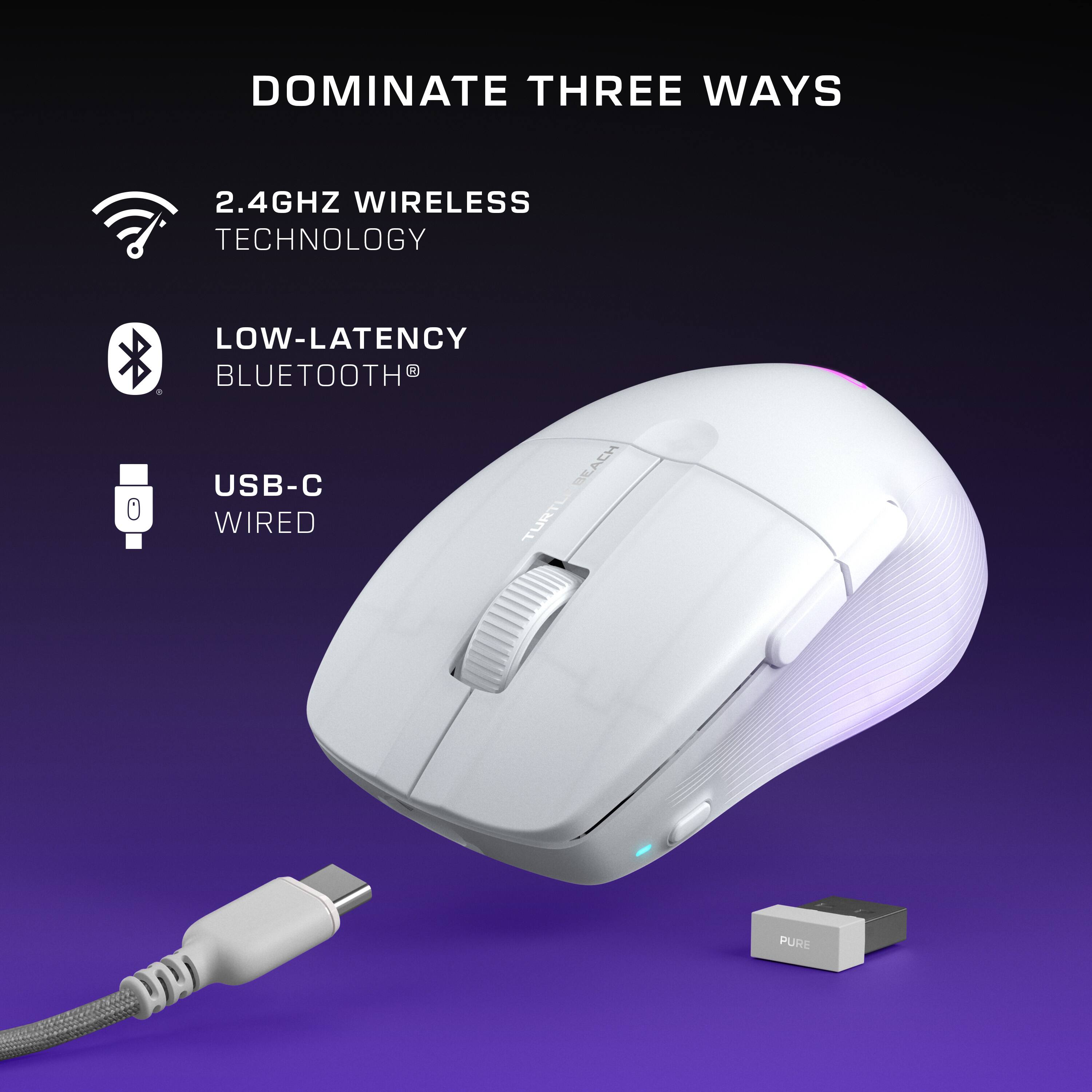 |Posted .This reviewer received promo considerations or sweepstakes entry for writing a review.The Turtle Beach Pure Air gaming mouse is a great option for anyone looking for a high performance, comfortable gaming mouse. The Pure Air features Wireless 2.4ghz or bluetooth connectivity, 26K dpi optical sensor, TITAN optical switches, up to 125 hour battery, and a light 54g weight. In the box you'll find the mouse, a wireless USB-A dongle, and a USB-A to USB-C charging cable. Setup is relatively simple. Once you plug in the mouse, you will automatically get a prompt asking if you want to install the Turtle Beach software. Once installed, you'll probably have to install an update for the mouse, which also requires the USB dongle to be plugged in as well. All in all, it took maybe 5 minutes to get everything installed and ready to go. In the software, you are given the opportunity to customize the mouse to your specific preferences. You'll find all the expected customization options as well as a couple that I'm not even familiar with. The mouse itself feels very nice in the hand. But keep in mind, this is not necessarily an ambidextrous mouse. While it can be used in the left hand, it is definitely designed for right-hand use, evidenced by the two extra function buttons where your right thumb would be. Which brings me to the buttons. They have a nice clicky feel and are very responsive. The mouse wheel has a nice subtle but smooth click for each scroll up or down, and the click is distinct from the left and right clicks, but has a nice feel all it's own. The two aforementioned thumb buttons also have their own distinct click feel, and are positioned very nicely to be easily accessible in game, but at the same time, not get in the way. And of course, these two buttons (and really all buttons) can be customized in the software. And last but not least, there is a DPI button at the very bottom front of the mouse, accessible enough but definitely far enough out of the way to not be pressed accidentally. And finally, the mouse does feature an RGB light, but it is very subdued for a gaming mouse. It is just the Turtle Beach Logo, and it is all but completely covered when you are actually using the mouse. A welcome departure from other more in-your-face gaming mouse designs out there. Performance wise, this mouse more than met my expectations. The comfort and response was spot on. Even when using it wirelessly, I didn't notice any kind of lag or missed inputs or anything. And if you decide to use it wired, the included usb cable is nice and flexible, perfect for gaming. The light weight combined with the smooth glides make for an absolutely buttery smooth experience. All in all, this is one of the best gaming mice I have used in a long time. It is very comfortable, light weight, and has amazing performance. I would easily recommend this to anyone looking for a good gaming mouse.