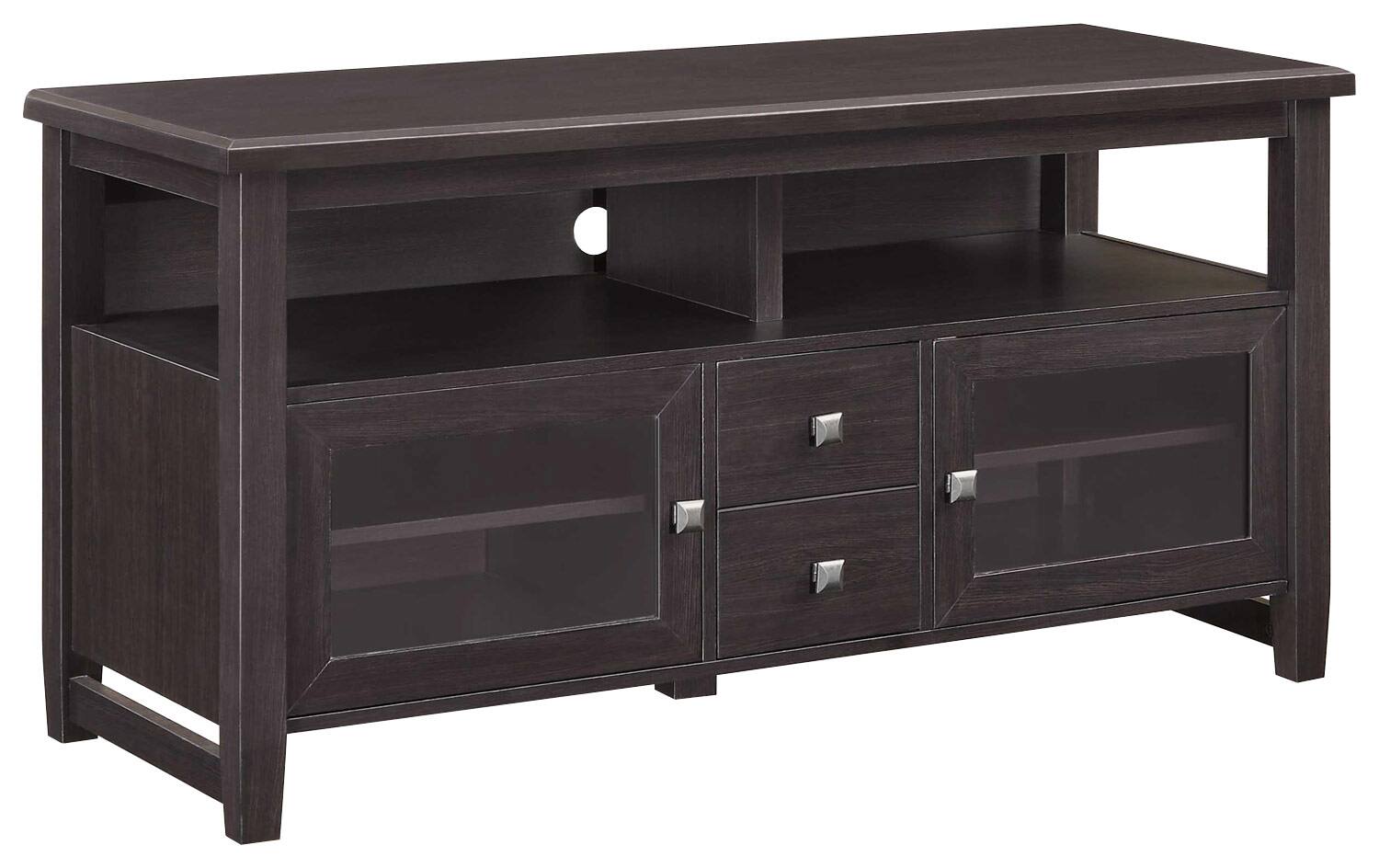 This TV stand is overall very good and I wouldn't hesitate buying it again; however, it can be a little misleading to view it online. The middle section appears to have 2 drawers. It actually is another cabinet instead. 2 drawers were very appealing to me to keep DVDs/Blurays organized but instead it is a cabinet.