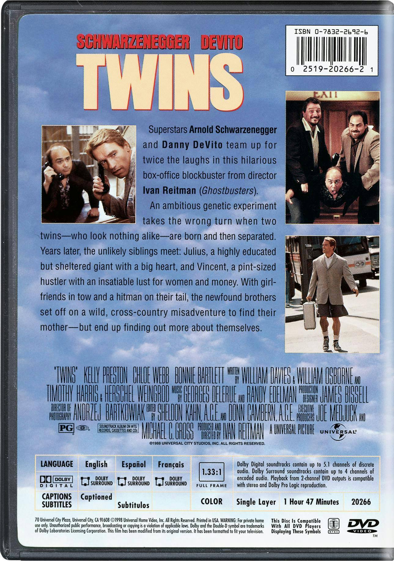 'Twins' is a relatively humorous comedy that is carried mostly by Danny DeVito. The film has its moments, but isn't what I would consider top-notch entertainment. The dvd is nothing special, full-screen only with no bonus features.