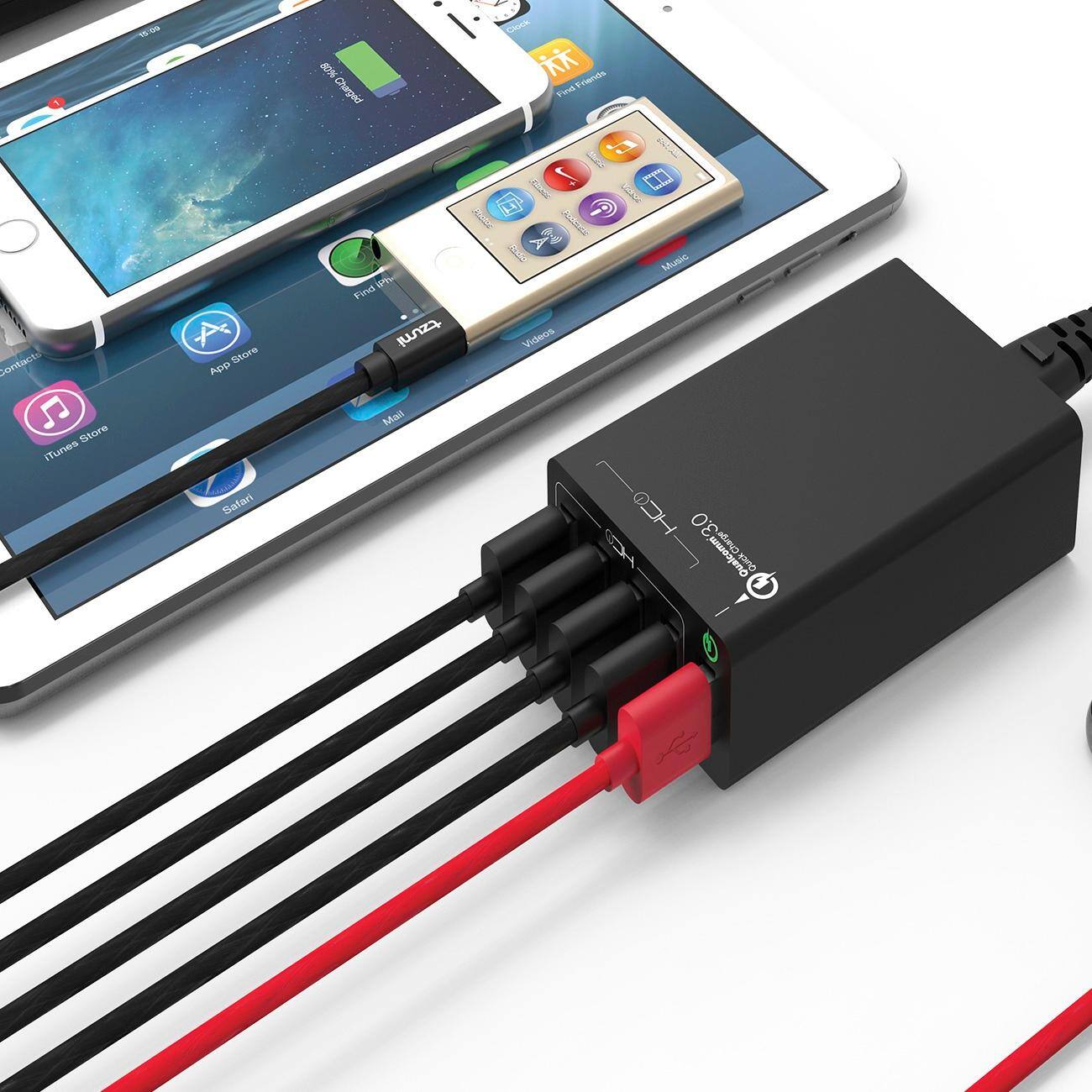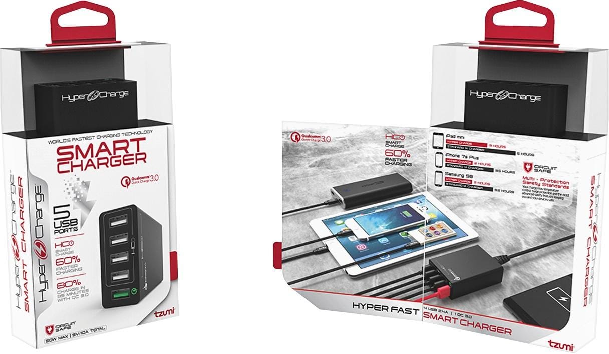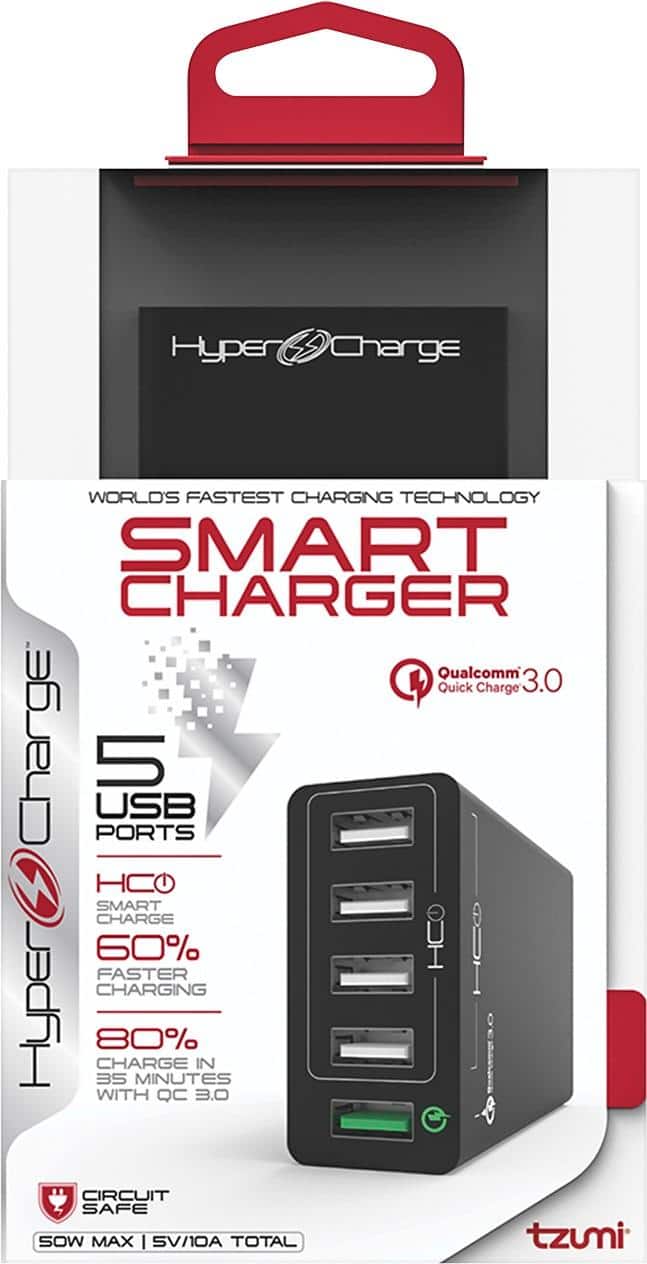 This Tzumi HyperCharge five-port desktop works superb as a charger to recharge a range of devices simultaneously. Super fast charging, 5 ports, easy to carry around and serves the purpose very well!