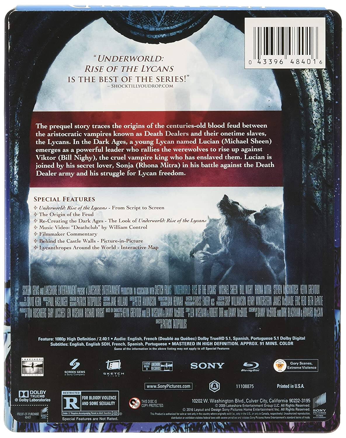 The third film in the Underworld series, Underworld: Rise of the Lycans is actually a prequel to the first two films, and it fills in the background events leading to the Vampire-Lycan War. It is one of the more entertaining entries of this dark series. The Blu Ray disc is packaged in a limited edition collectable steel book.