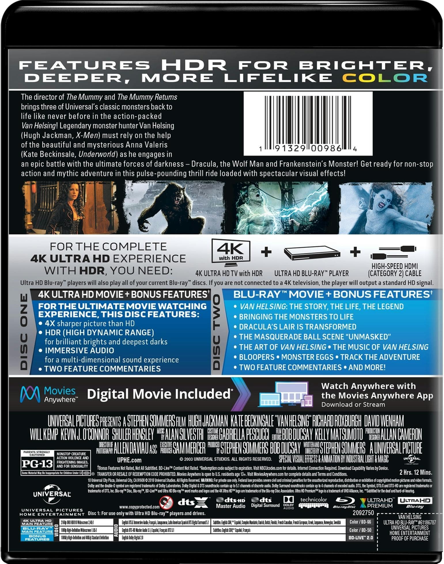 This movie was originally shot on film but what was digitally scanned to add the CGI. This is obviously a quick up-convert by re-encoding it into 4K. HDR is garbage, almost too dark to make out most of the film, but does have DTS:X (no Atmos though, sorry Sonos owners). Universal has gotten extremely lazy, unless Fast, Furious or Jurassic is in the title, they won’t put any money into it. This does have the additional Blu-ray and the digital copy so it’s not a total loss; if you’re a big fan of this movie or cast/crew behind it, this probably the best you’re gonna get, it just could’ve been better. Given that it has faded from the mainstream and the Dark Universe reboots (which this should’ve totally been the launching point) failed, I doubt Arrow Video (who has recently been restoring Universal films in 4K) will pursue it. Kinda hope they don’t since I bought this, but I doubt it.
