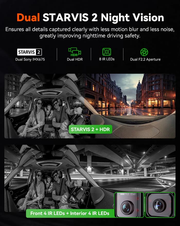 I've tried several dashcams, but the Vantrue E360 ACE is on another level. The dual-fisheye lenses and STARVIS 2 sensors deliver crystal-clear 360° recording with zero blind spots-day or night.