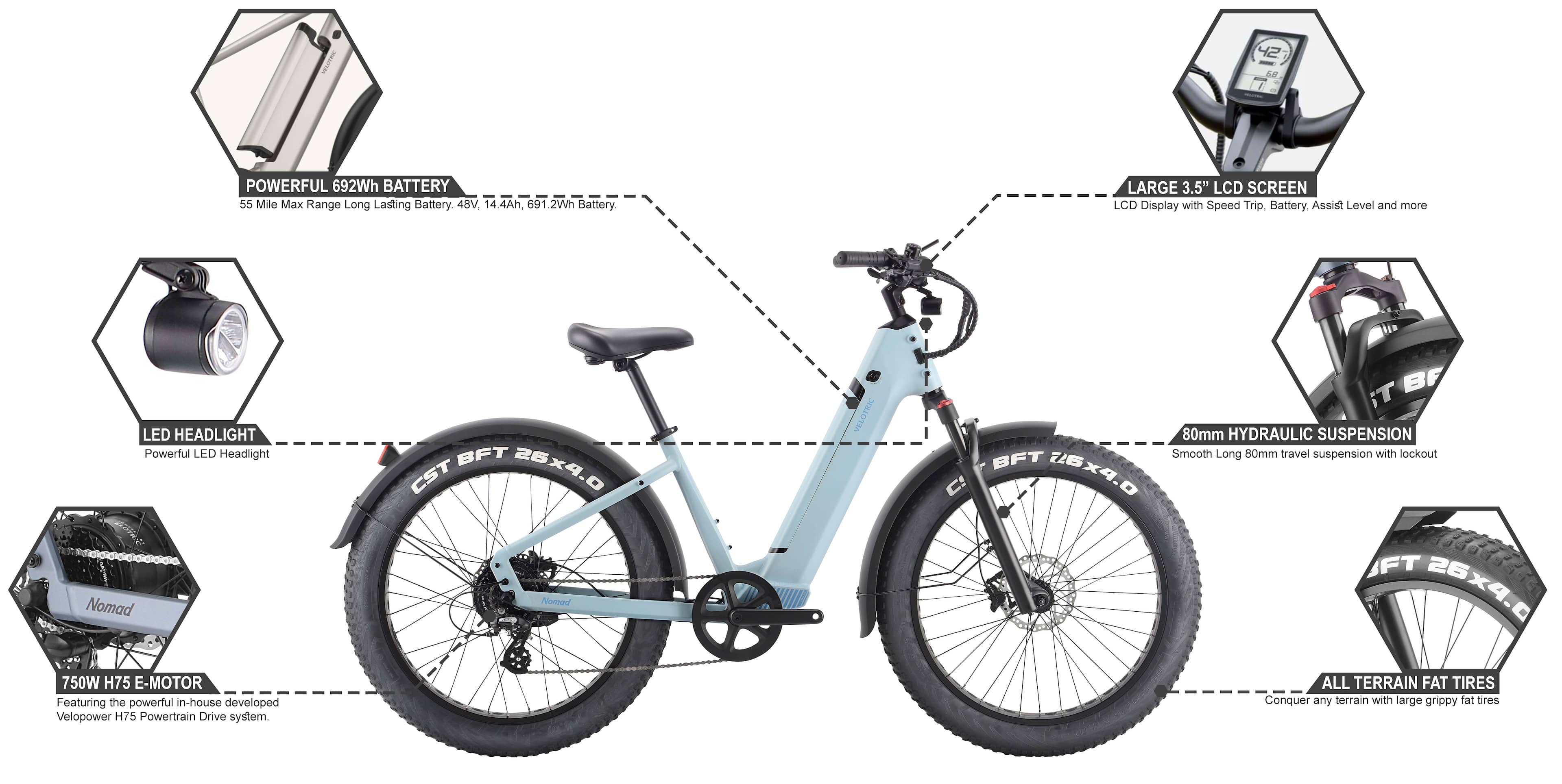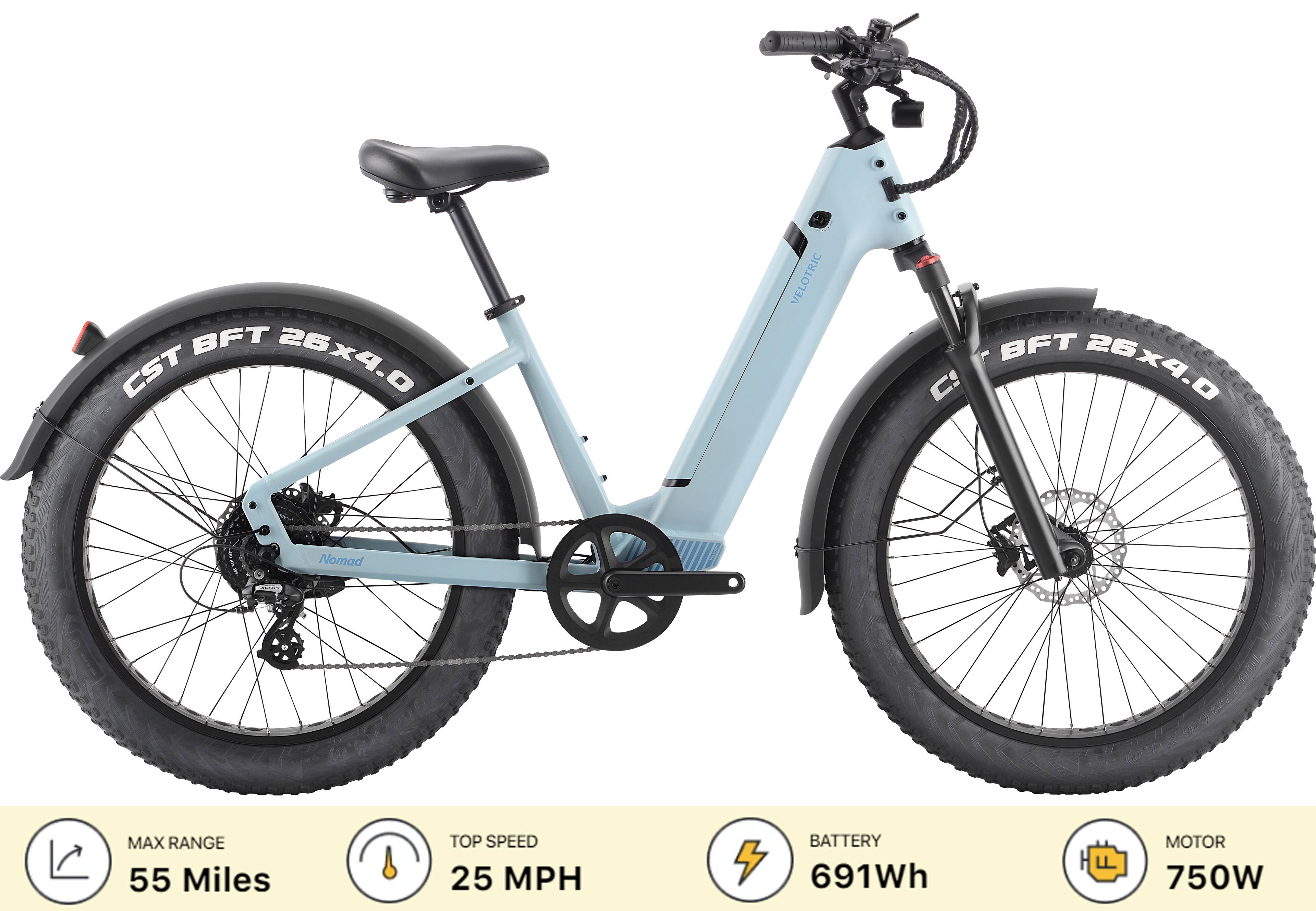 This review is from Velotric - Nomad 1 Step-Through Fat Tire Ebike with 55 miles Max Range and 25 MPH Max Speed UL Certified - Indigo Gray
