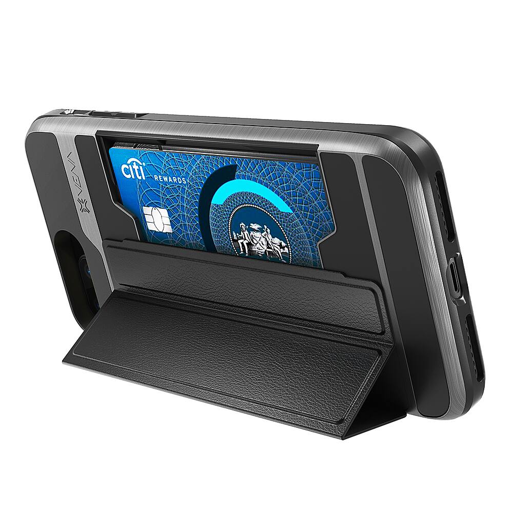 After trying several cases and folio styles that carry cards, I’m glad I found this one. It’s the perfect solution for those who only need to carry an ID and charge card and a little emergency cash in lieu of a wallet. Better than either having slots for cards on the outside of the case or having the annoyance of a folio’s fold over flap that puts the cards against the screen. And it doubles as a two way kickstand. Really well designed case. Highly recommended for anyone looking for a case to replace a wallet.
