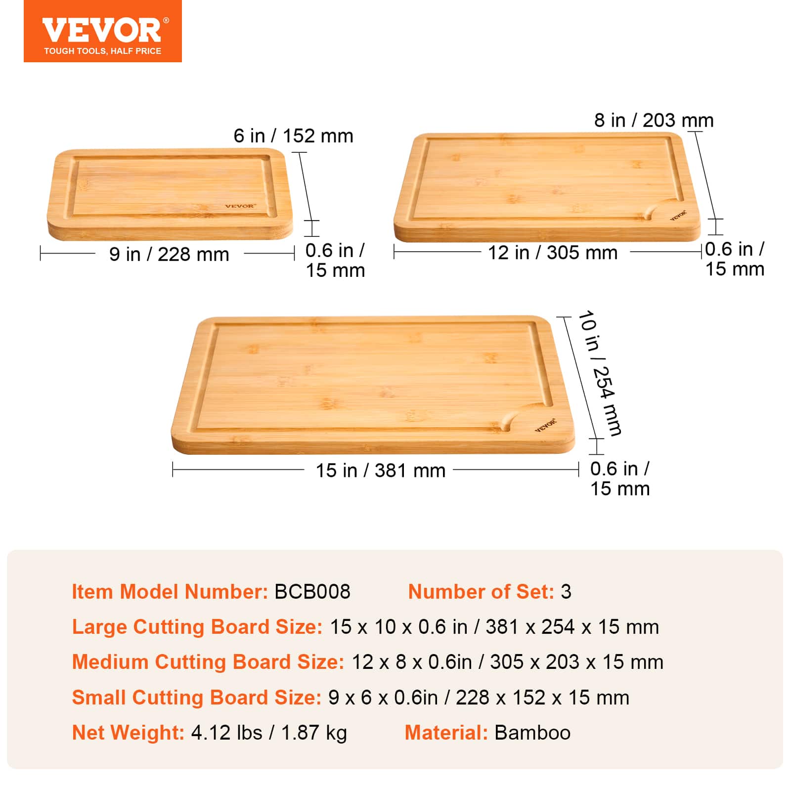 3-piece Vevor bamboo cutting boards