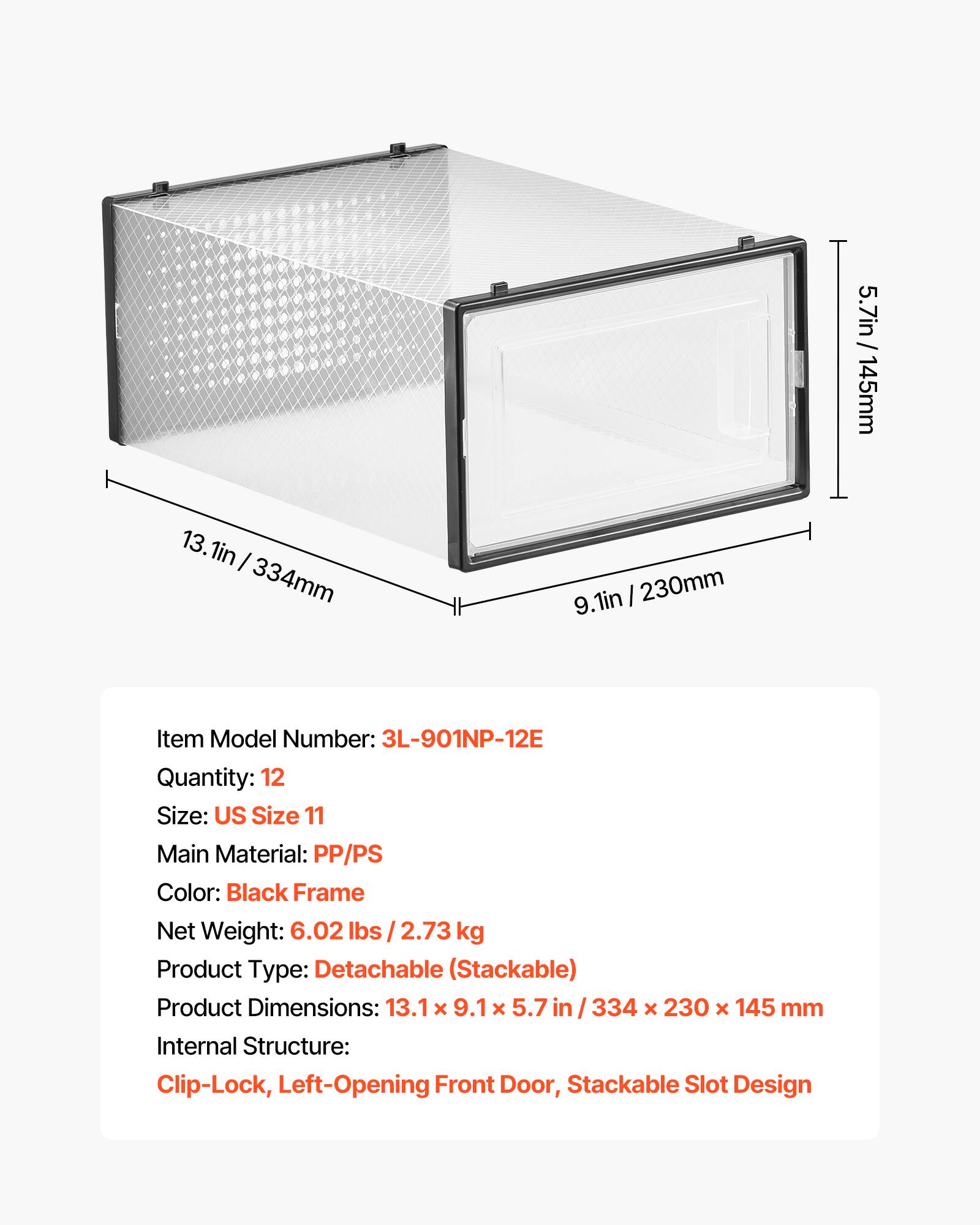 This review is from VEVOR - Shoe Storage Boxes, 12 Pack Stackable Shoe Boxes Storage Organizers, Fit up to US Size 11 - White