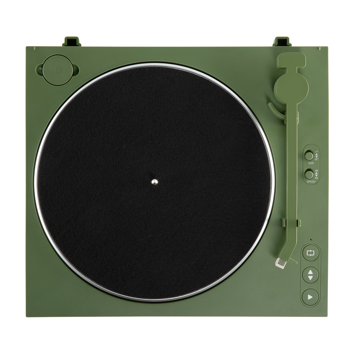 The operation is straightforward, and can be used with blue tooth, switchable line or phono output. The turntable is fully automatic. There is a slide switch for size and speed. Tactile switches for raise / lower tonearm, start / end play, and even has a repeat function.