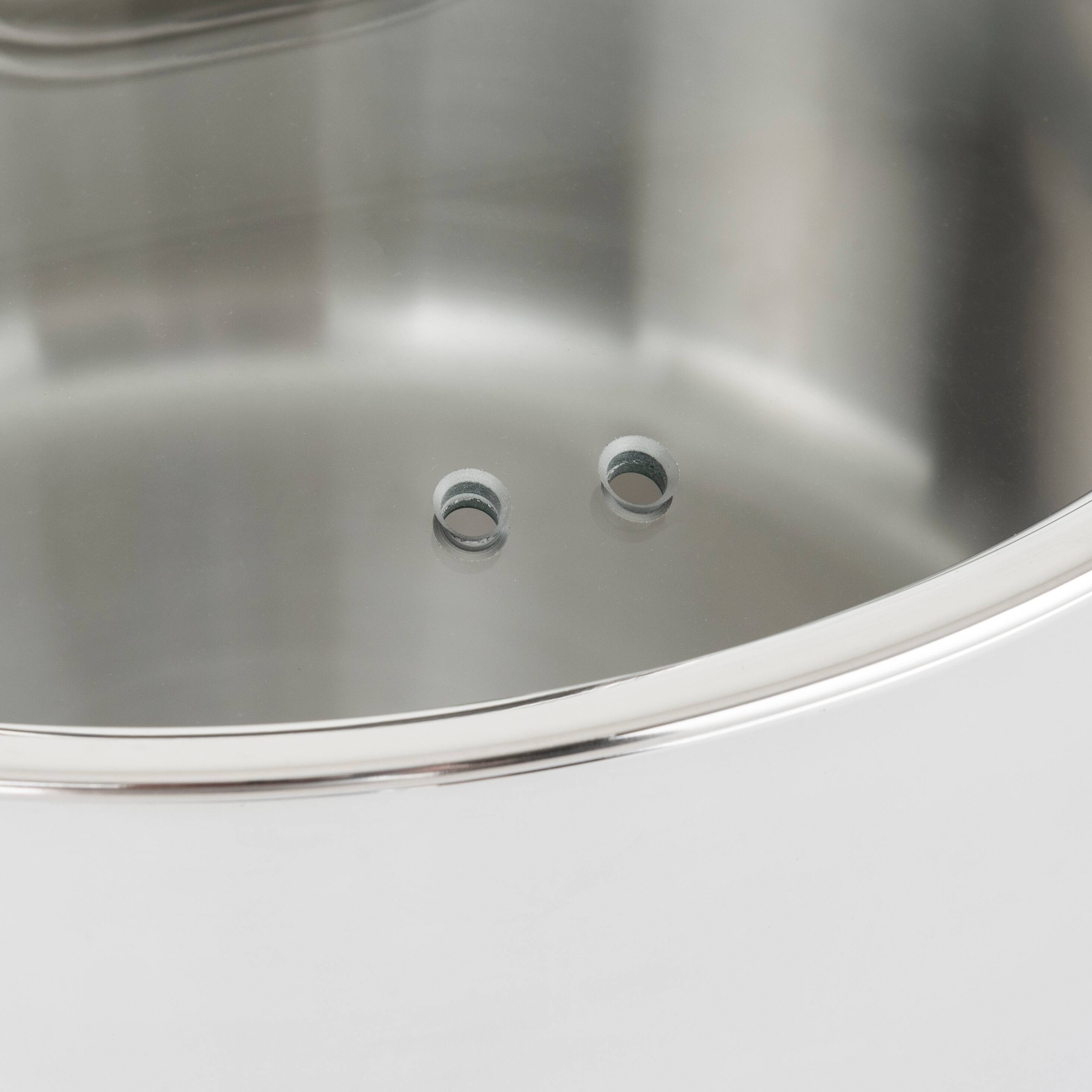 We needed to replace an old RevereWare Dutch oven that one of the handles had broken off of. After much searching, I didn't want a non-stick pan so found this pot & it is the perfect size, great quality, has a glass, vented lid so you can see in the pot as you're cooking. The handles get warm when cooking on the stove top but we just had to get used to using a hot pad when necessary. We've used it quite a few times already & it has been great!