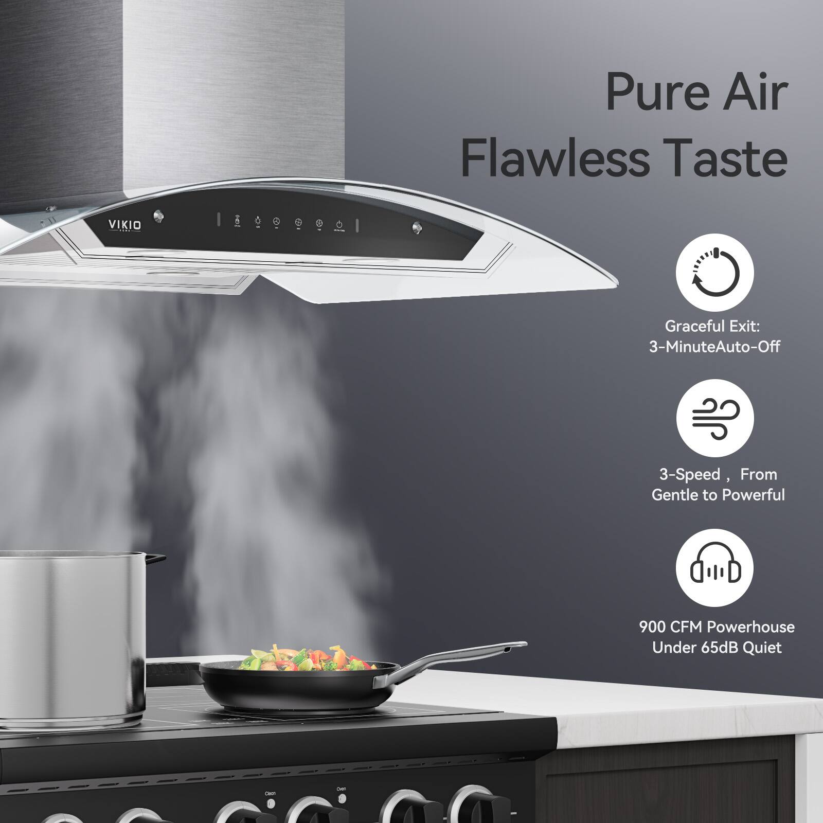 No more lingering food or chili smells! My wife and I cook a lot of stir-fry, and this 850 CFM dual-motor range hood clears the air fast and quietly. The 3-minute delay shut-off, gesture control, and sleek stainless steel design make it both smart and stylish. We’re very happy with it!