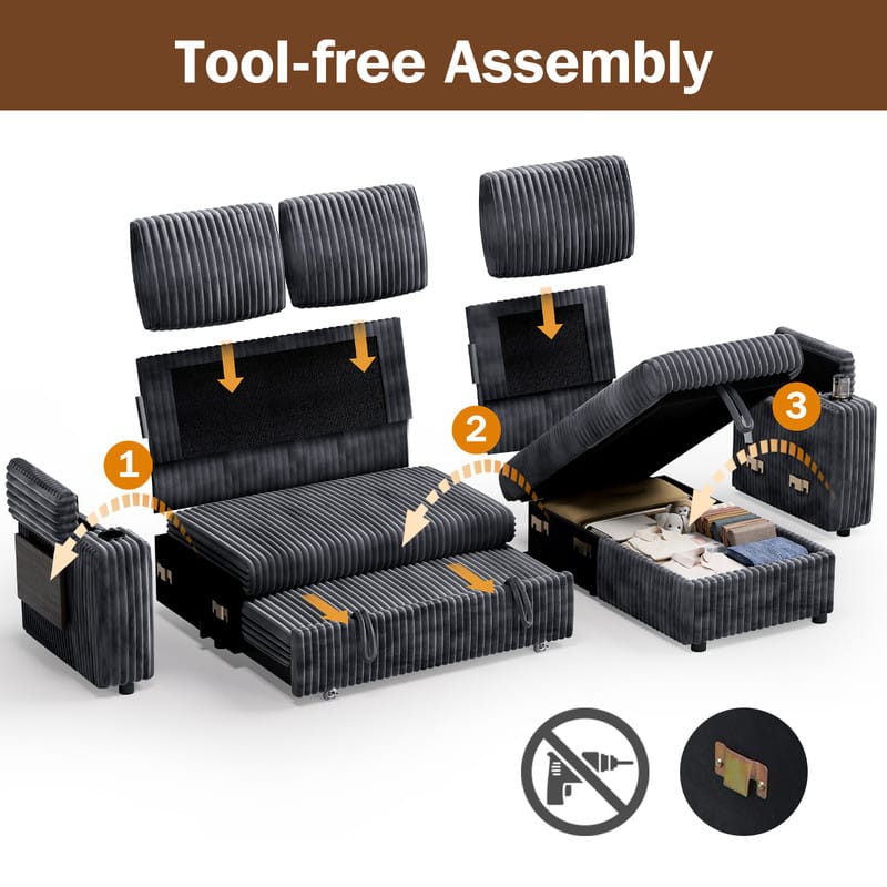 Probably one of the most comfortable couches I have ever sat on. The shipping was fast and putting it together. I almost could do this myself. The only reason why I needed help because some of the pieces were heavy. You just snap together no screws no bolts no nails. I was curious to believe that they said that but pleasantly surprised that you just snap the pieces together. I had a houseguest the next weekend, and it only took one minute to pull the bed out. And Because you can recline the back of the couch it makes a huge bed, like a king bed. I’m so glad I came across this listing, thank you Best Buy