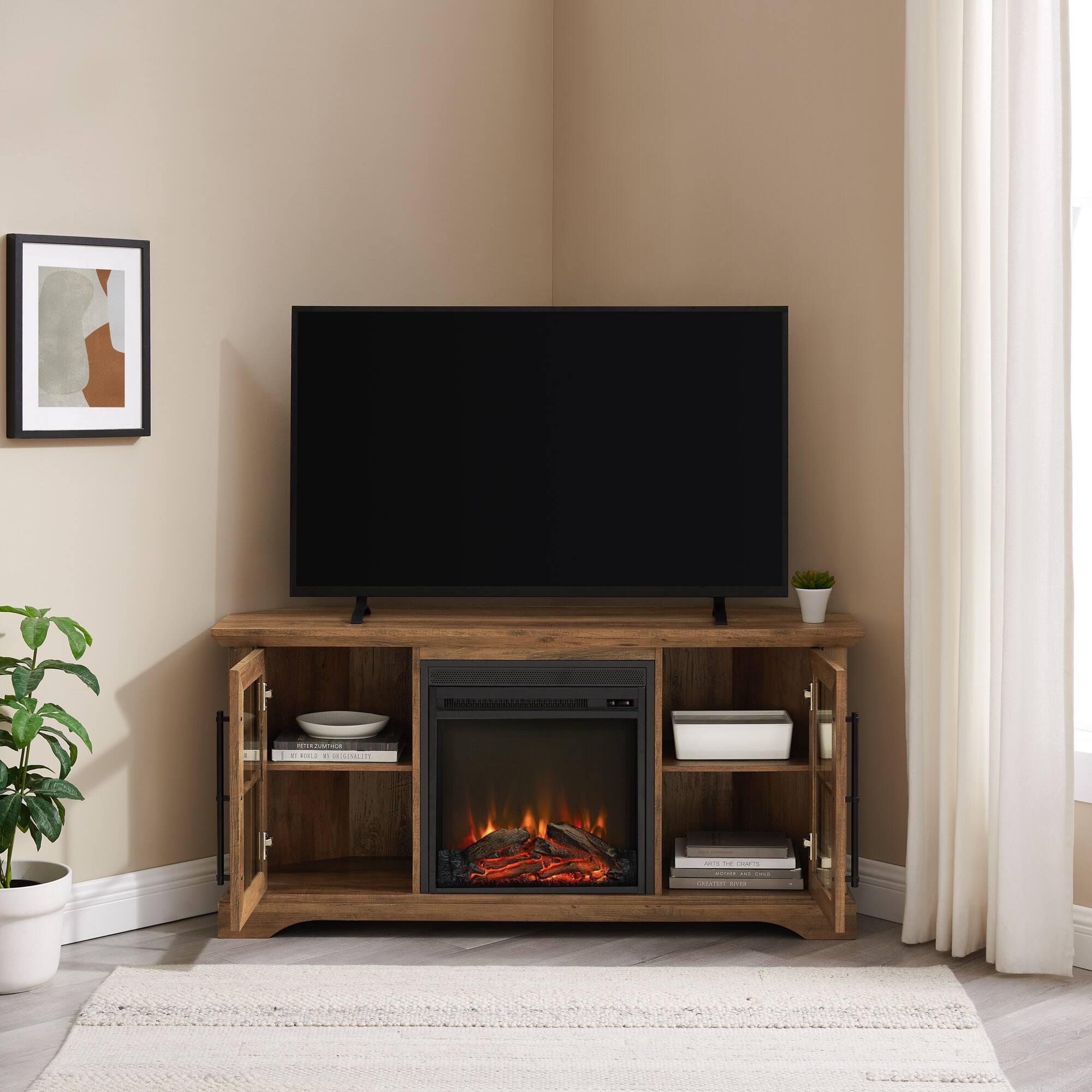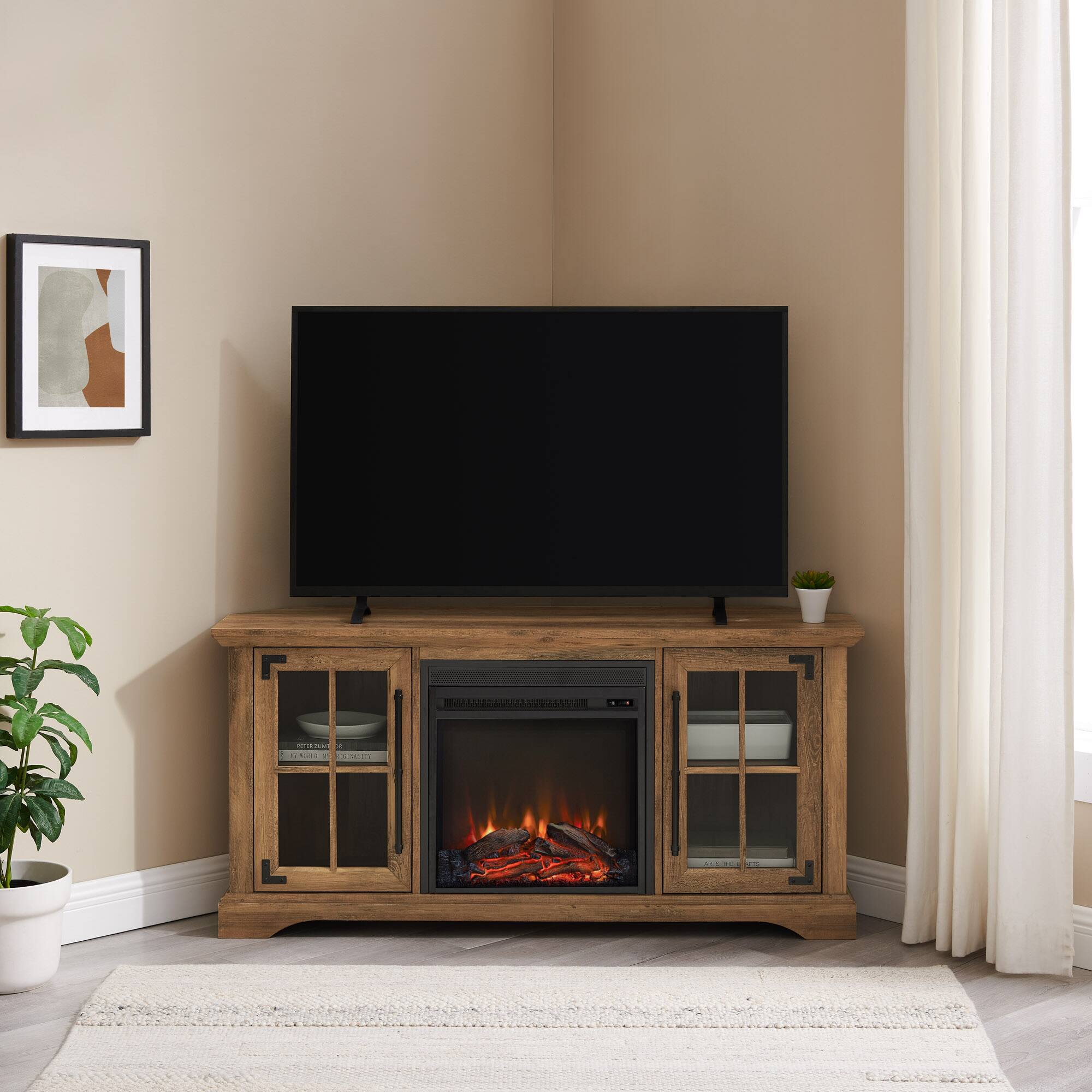 This review is from Walker Edison - Farmhouse Corner Fireplace TV Stand for TVs up to 55” - Grey Wash