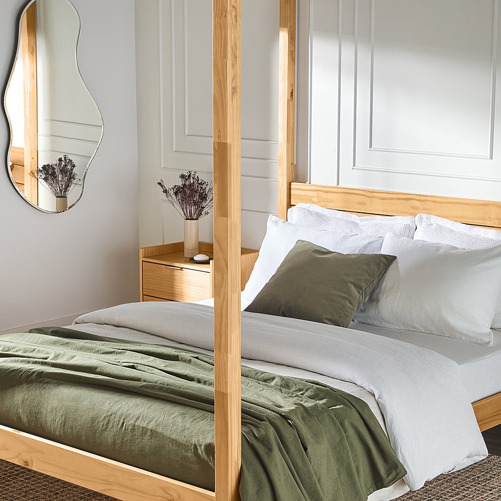 This review is from Walker Edison - Minimalist Slatted Solid Wood Canopy Queen Bedframe - Black