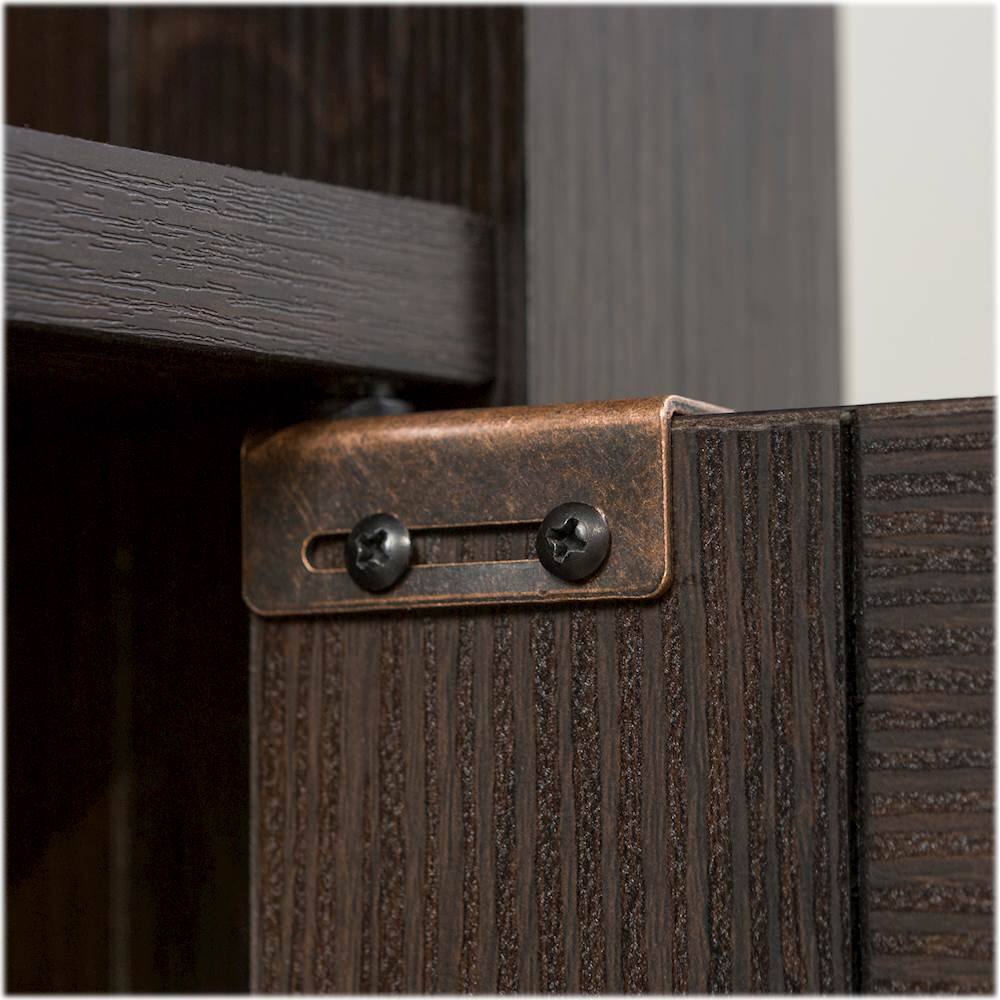 Just what I was looking for. Love the black wood finish and the fact it has closed cabinet storage. I usually attempt furniture assembly, but with the cabinets I went ahead and paid the $50 with my membership to have geek squad assemblers come out. Was worth it.