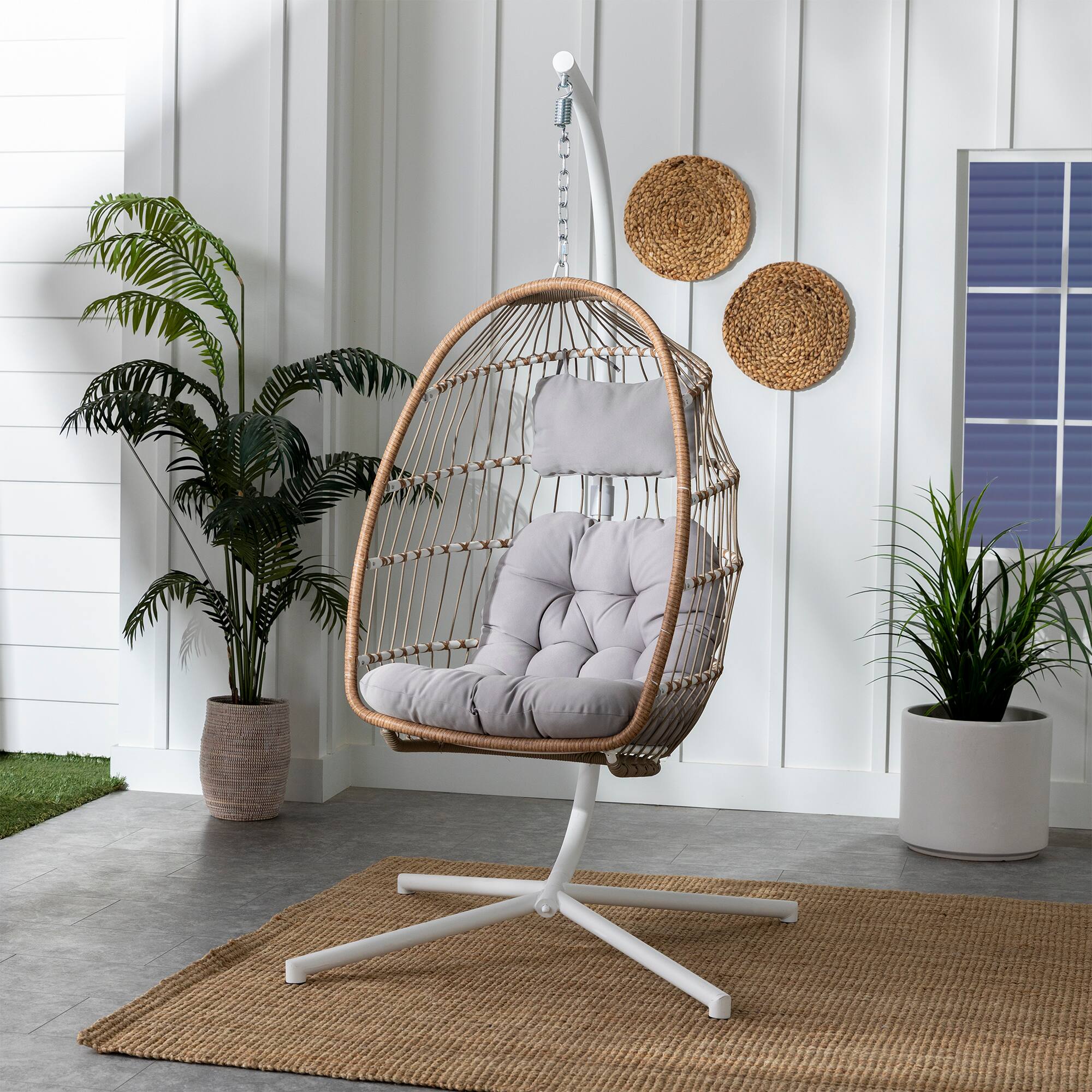 This review is from Walker Edison - Swinging Wicker Patio Egg Chair with Cushion - Gray/Gray