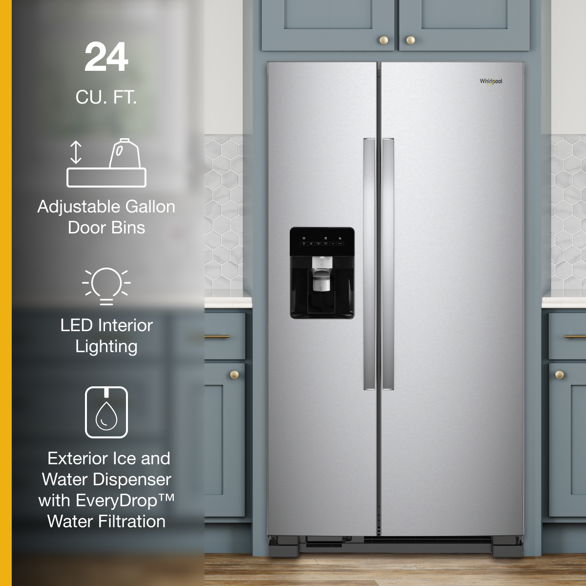 I chose this Whirlpool because the brand speaks for itself and it had the features that I was looking for. The only thing is when the ice drops, it's very loud, but it's ok. I've only had it less than a month, so far I haven't had any problems.