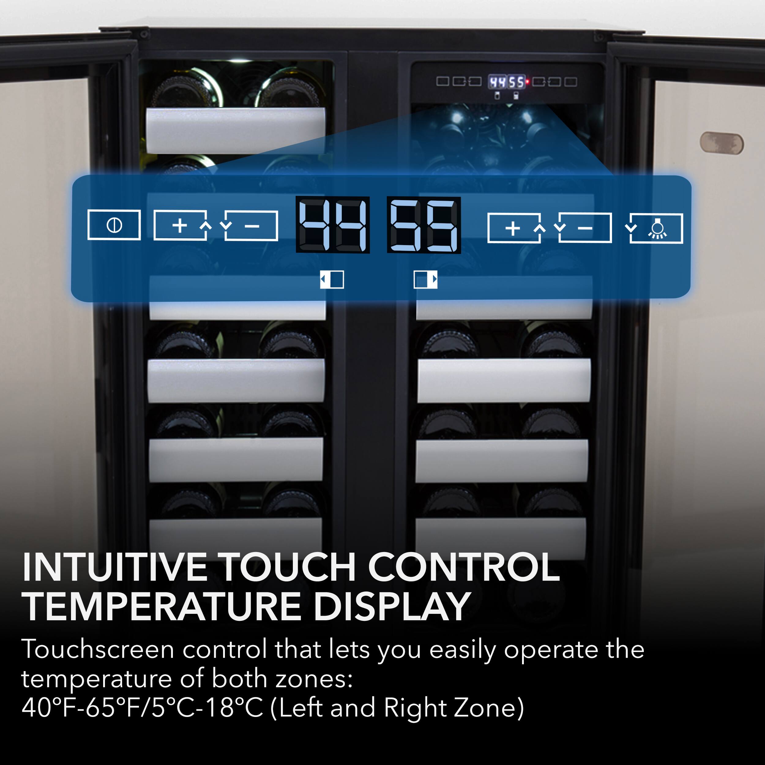 This is a great wine cooler. It looks terrific and is reasonably priced for its good looks and features (under $1,000). You can set the temperature on each side and open only one door to retrieve a bottle of wine. It is a little noisy but that seems to be typical for a wine cooler.