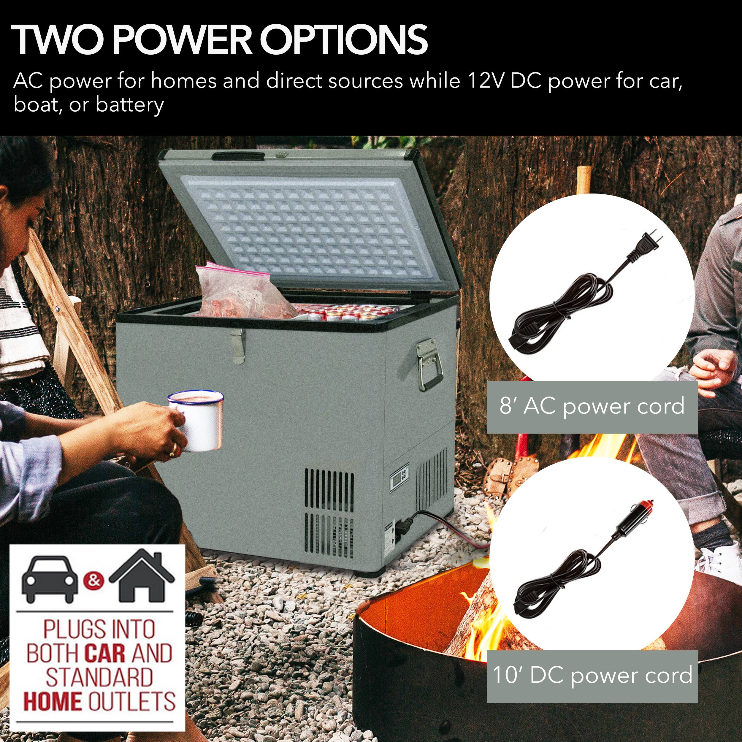 What I love about this unit is the dual power plugs. In the car, I have it running off of AC. When I turn off the car, it automatically goes to my deep cycle battery in the trunk for DC power. Lower cost fridges have one plug, so it can't switch.