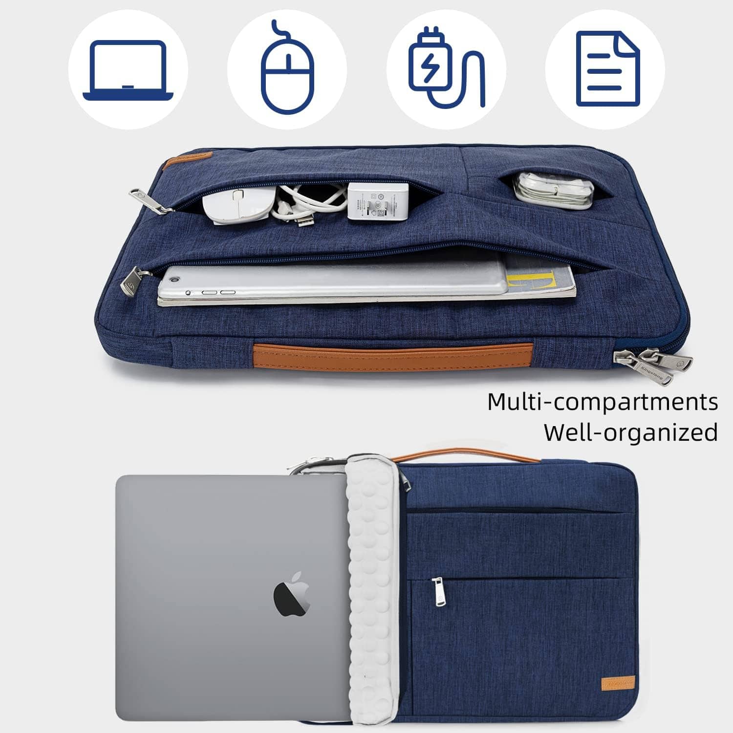 I was looking for a laptop sleeve to fit my new 16 inch laptop from Best Buy and wanted it to have a little room and not fit so snug like I have had in the past, that the zipper eventually breaks. This sleeve fits very nicely, and I like the side zipper, which makes it easier to slip in my laptop. The color is great. I like the pockets on the outside and I keep my huge power cable in one of them. The outside material seems a little thin, but all in all, this fit my needs. The gandle on top is a nice touch if I want to carry around my laptop with just the sleeve instead of putting it in a larger computer bag. I carry the laptop with this sleeve over it in a larger computer bag and it is not too bulky at all.