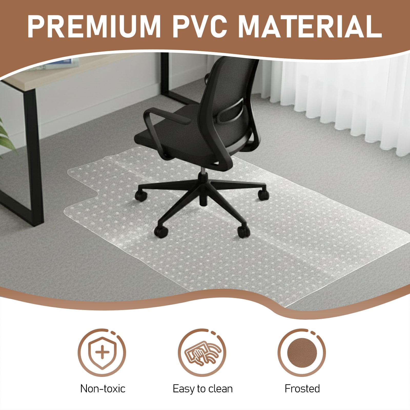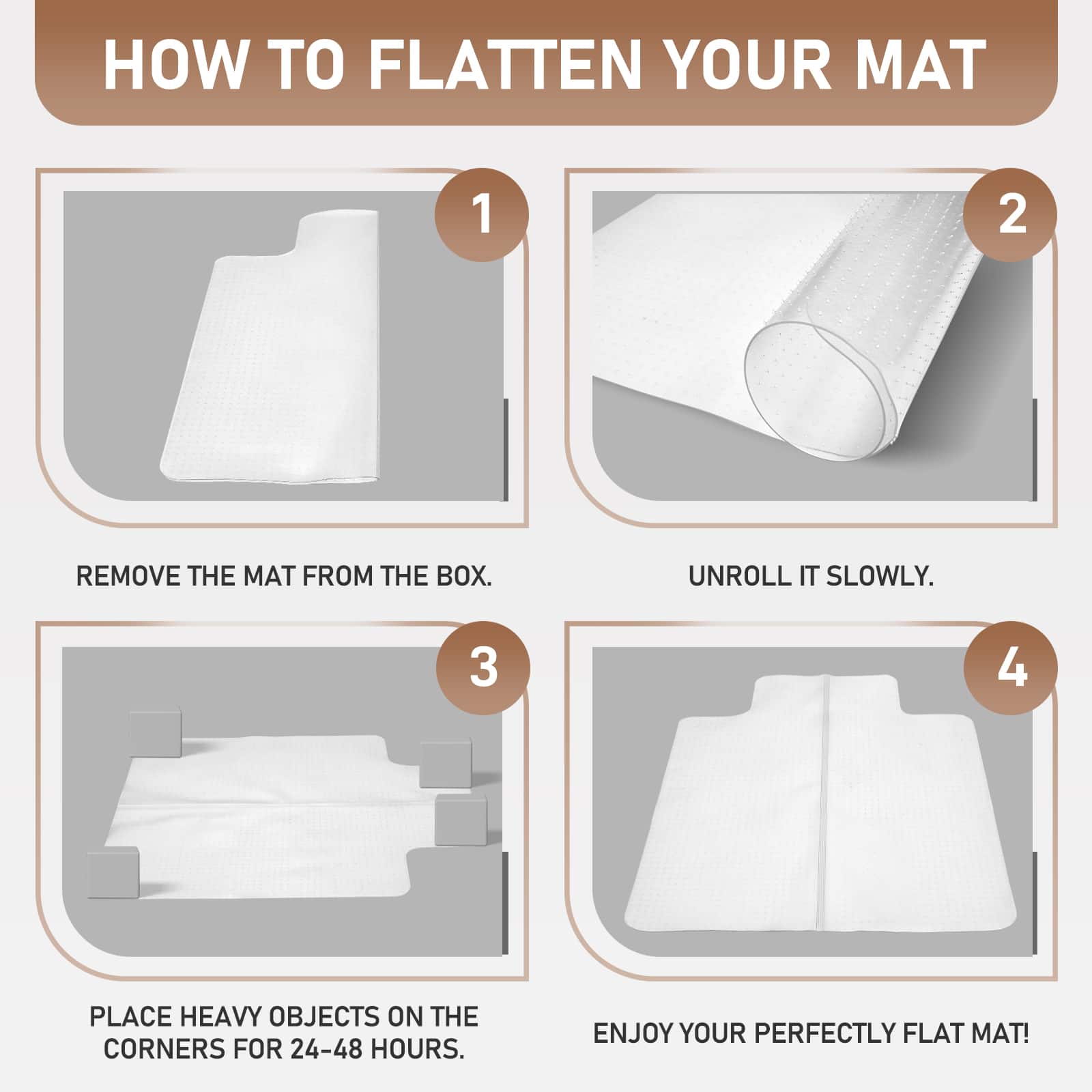 This is a very nice floor mat. It is light weight and easy to unpack and put in place at the desk.