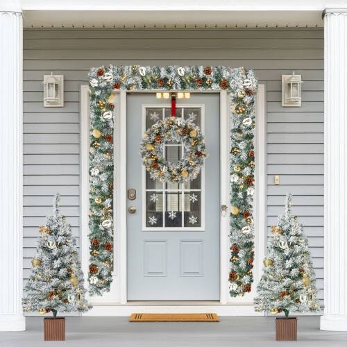 The tress the garland and wreath are beautiful it gave my decor a white Xmas with an elegant look