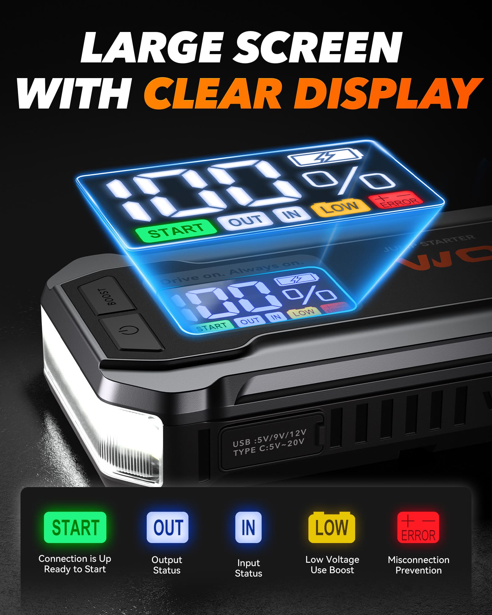 A nice product with a lcd panel showing power lecel.