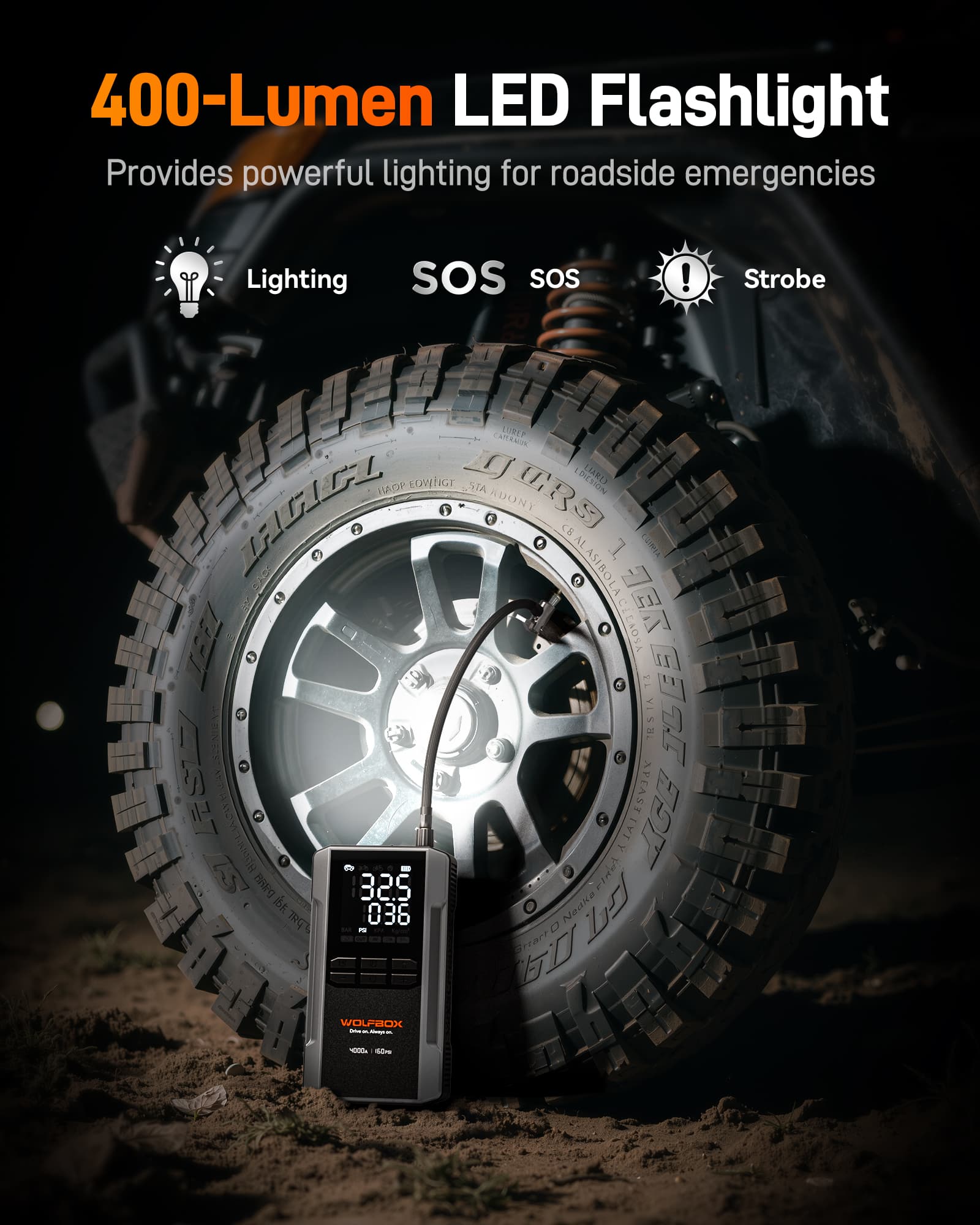 This unit was purchased to replace a Halo Bolt inflator/charger which was damaged and unusable when i dropped it after tripping and falling. The Halo was a very useful unit well designed and I wanted the same model, but was unable to find one and meeded a replacement quickly. The Wolfbox unit arrived fully charged and ships with a well written manual, cleverly designed case, jumper cable, and accessories for inflating functions. Controls are placed on the top of the unit which can make handling a bit awkward. This placement makes it easy to switch the loud inflating function on inadvertently while carrying it. Controls placed on the front panel like my former Halo would prevent this minor but startling issue. The large LCD panel is on the top and is easy to read. The inflator is strong and I believe this will be a great replacement for my damaged Halo. This is a great accessory to keep in a vehicle as it handles so many tasks well including electronics charger, flashlight, jumpstarting, and inflator.