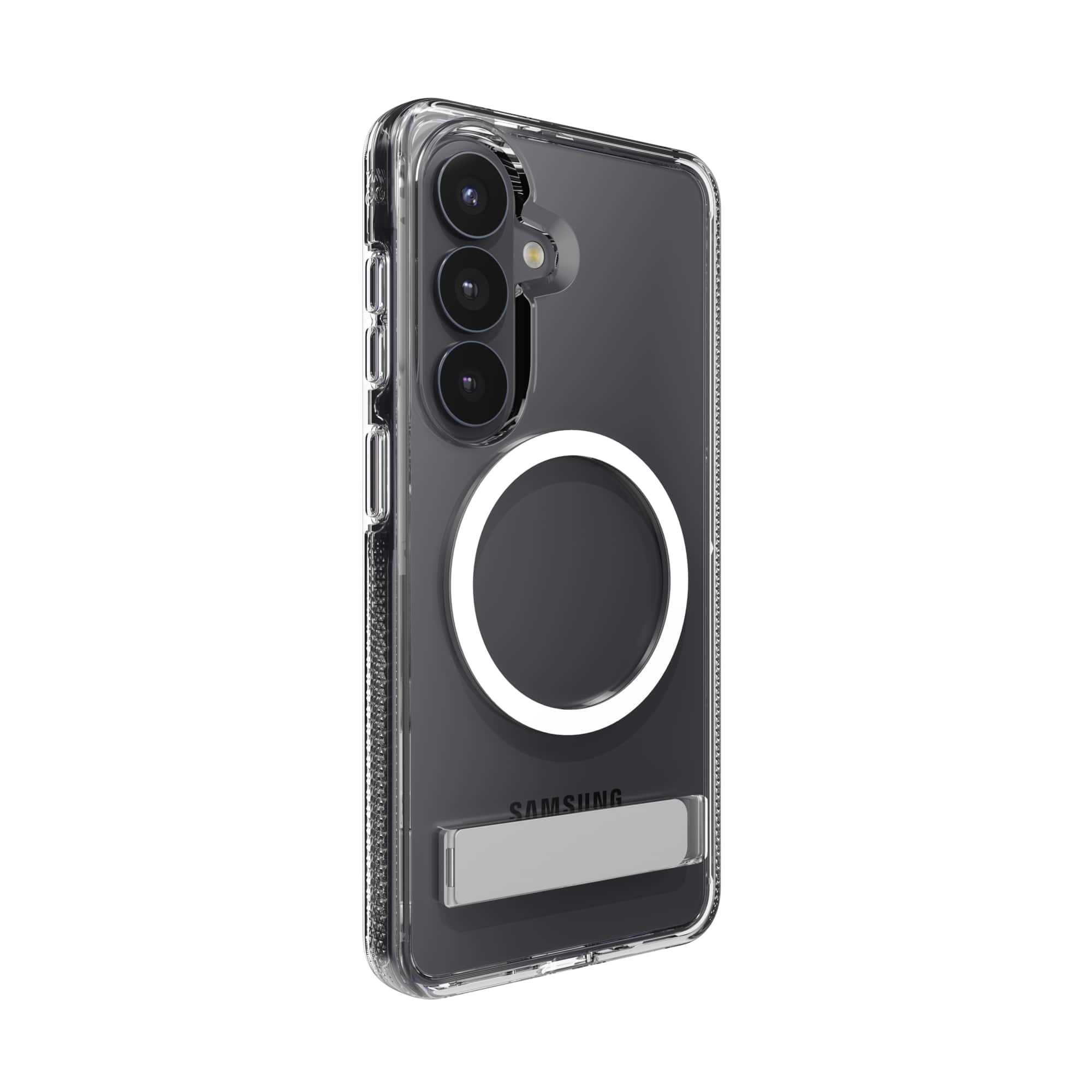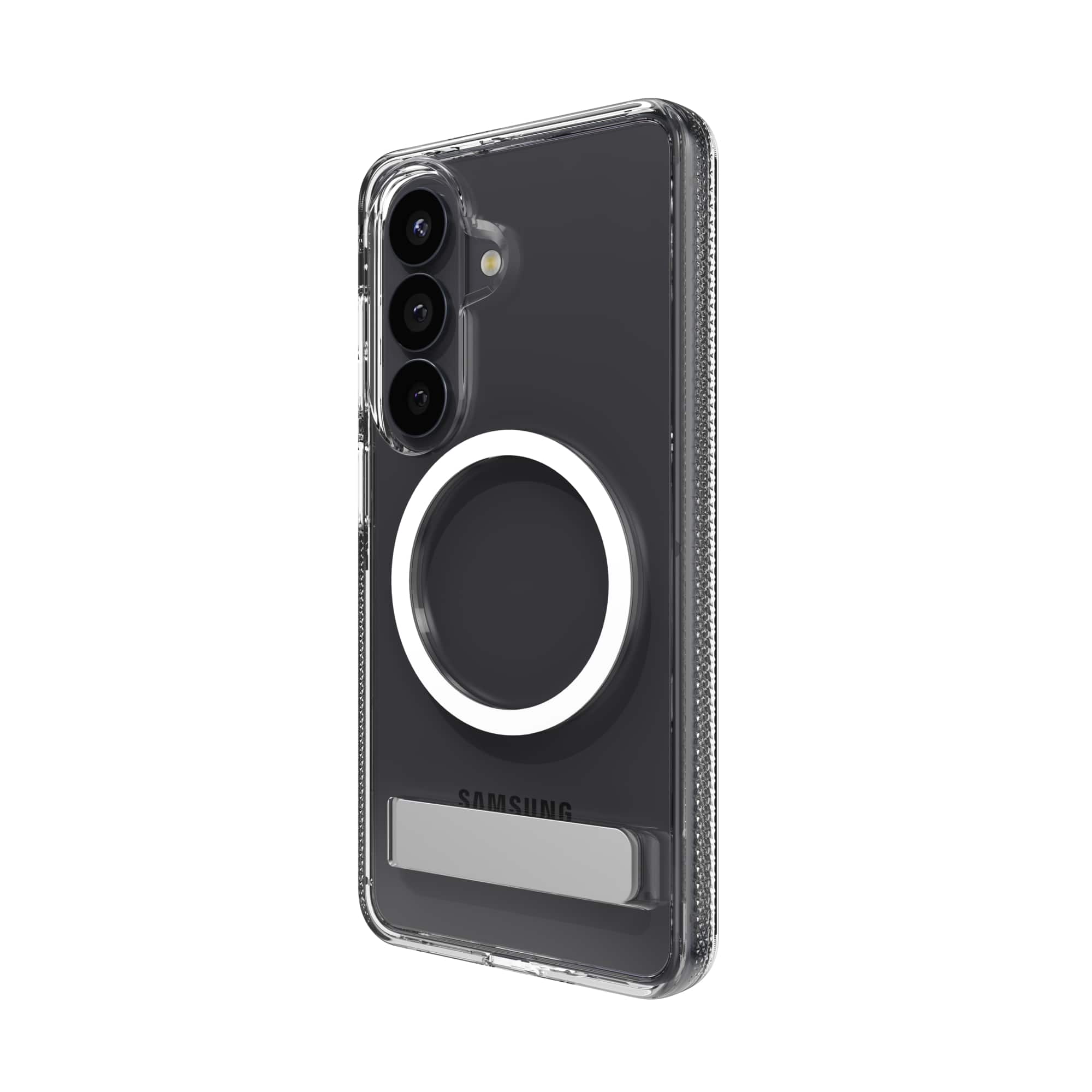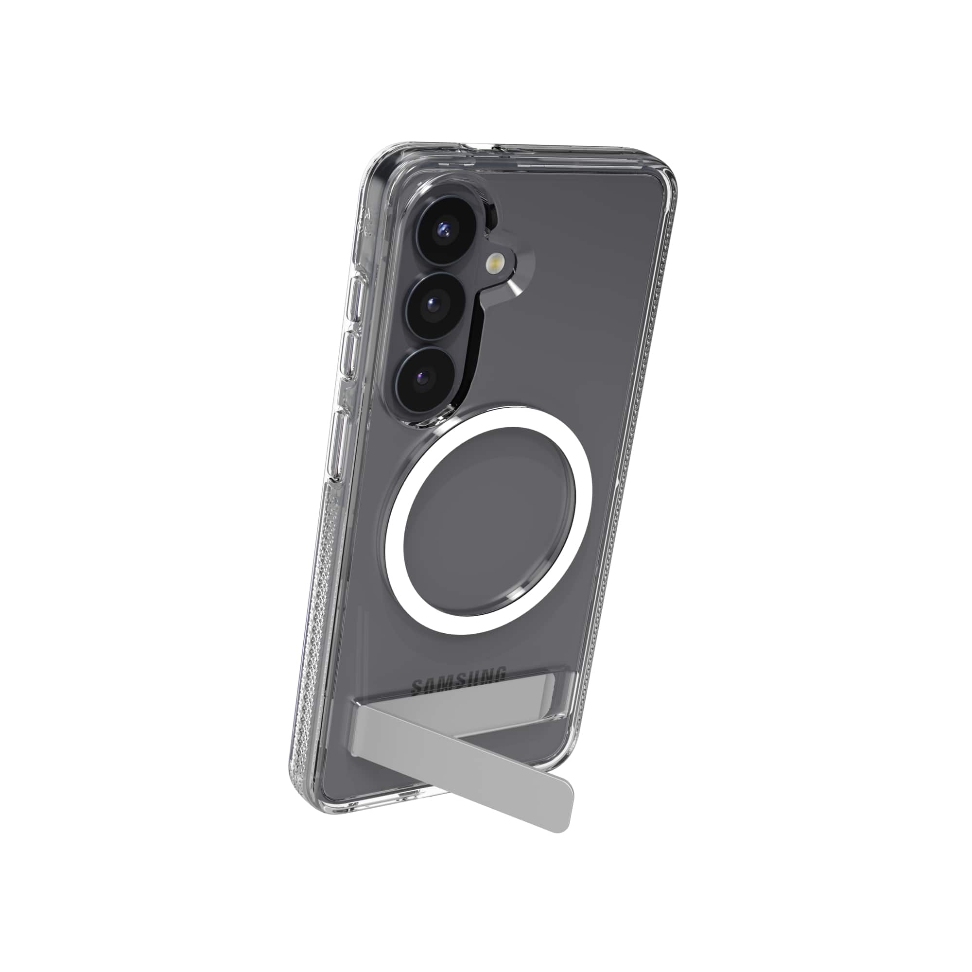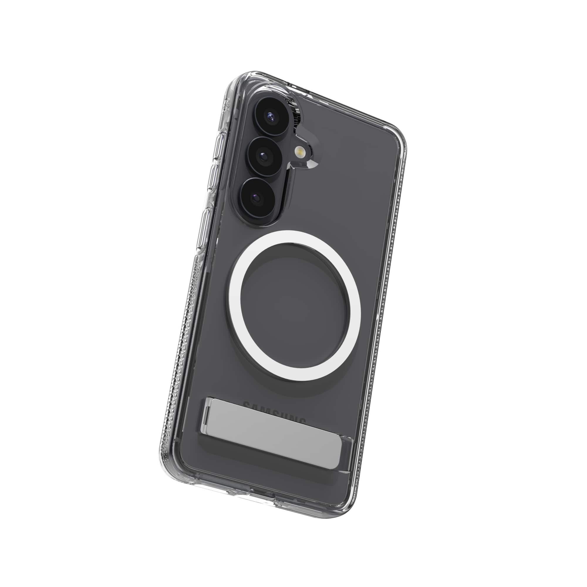Case is solid and if encapsulates the phone well. Kick stand is solid as well.