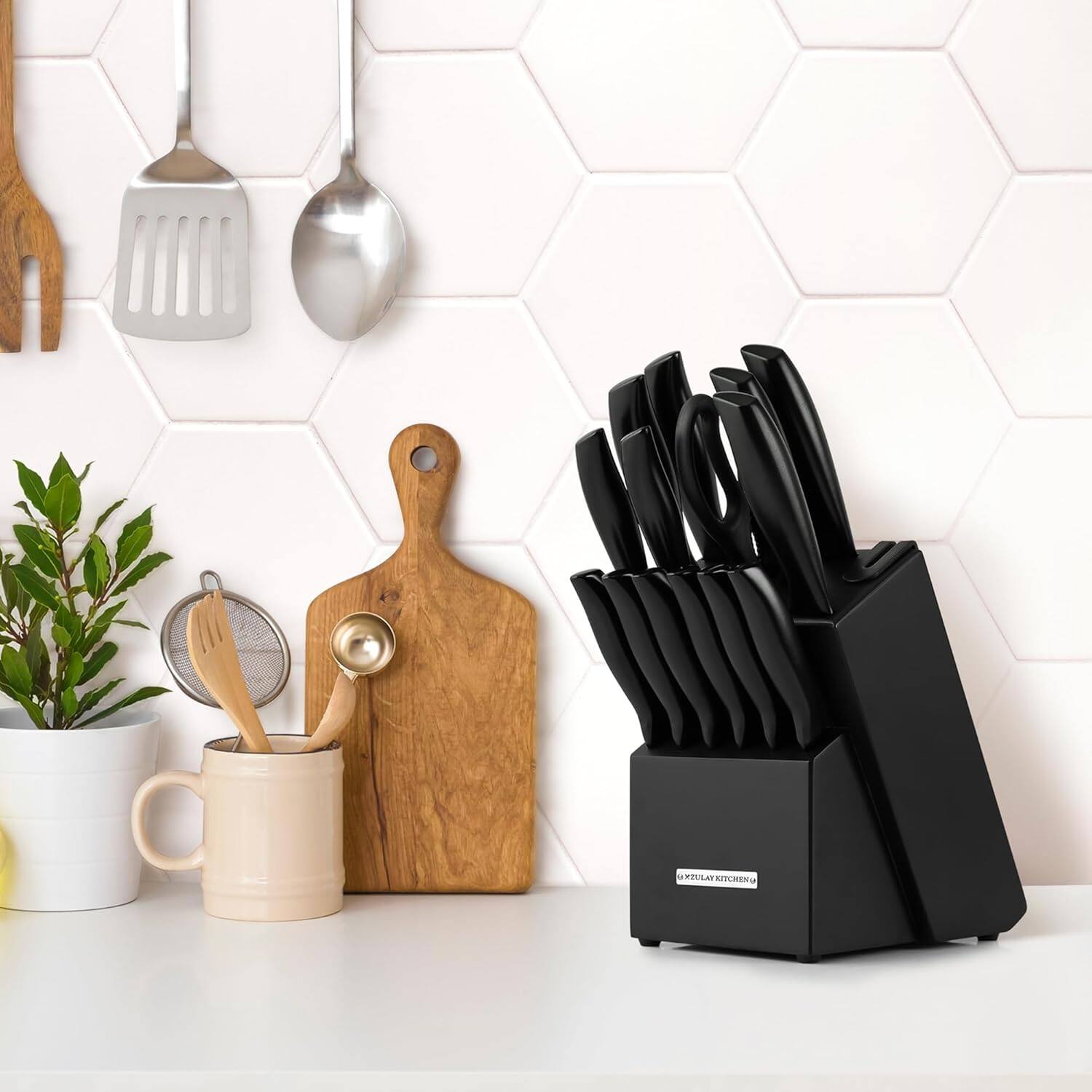 This review is from Zulay Kitchen - 15 Piece Stainless Steel Knife Set with Block and Sharpener - Gold White