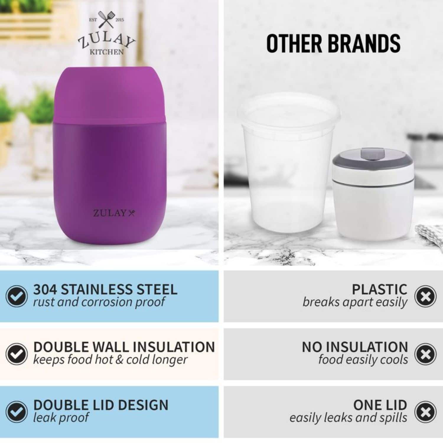 Nicely made, keeps food hot, built in spoon is convenient.