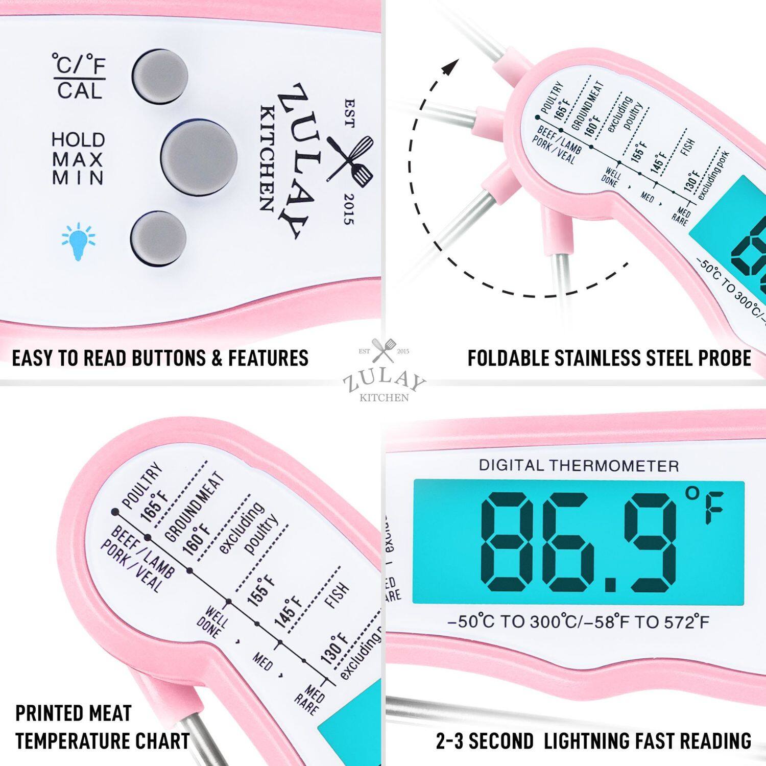 I bought this for when we're grilling. It's easy to use and quick, which is good. However sometimes it's hard to see the temperature in bright sunlight.