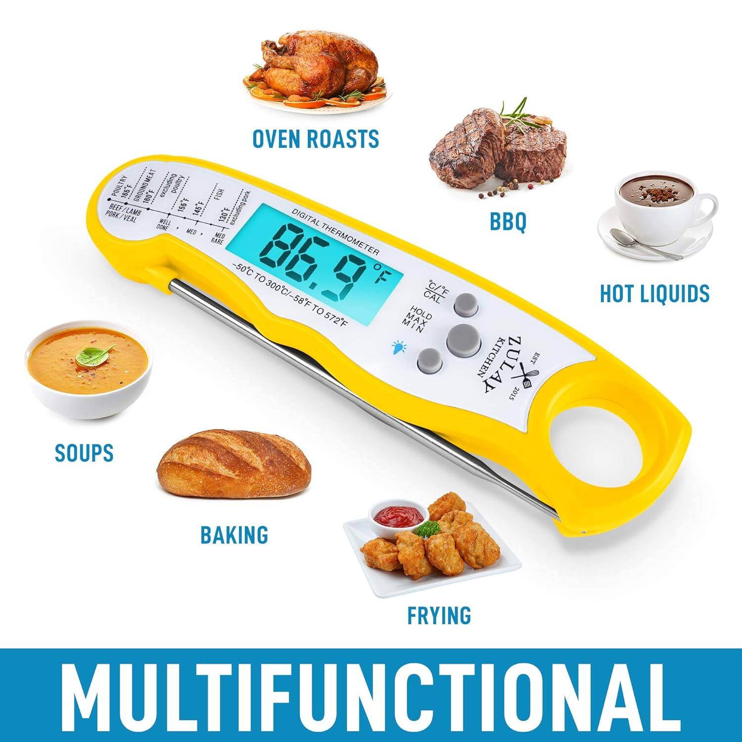 I bought this for when we're grilling. It's easy to use and quick, which is good. However sometimes it's hard to see the temperature in bright sunlight.