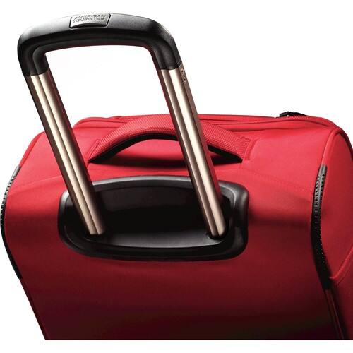 Smooth-rolling BALL wheel for the best maneuverability around. 600D Poly/Nylon for a lightweight, yet durable bag. Corrugated pull handle that uses less material to reduce weight, but increases durability and strength. Integrated top and side carry handles for the ultimate in lightweight technology. Large interior packing capacity with cross straps. Excellent interior organization with mesh and modesty pockets. Spinner Tote features a padded laptop compartment.