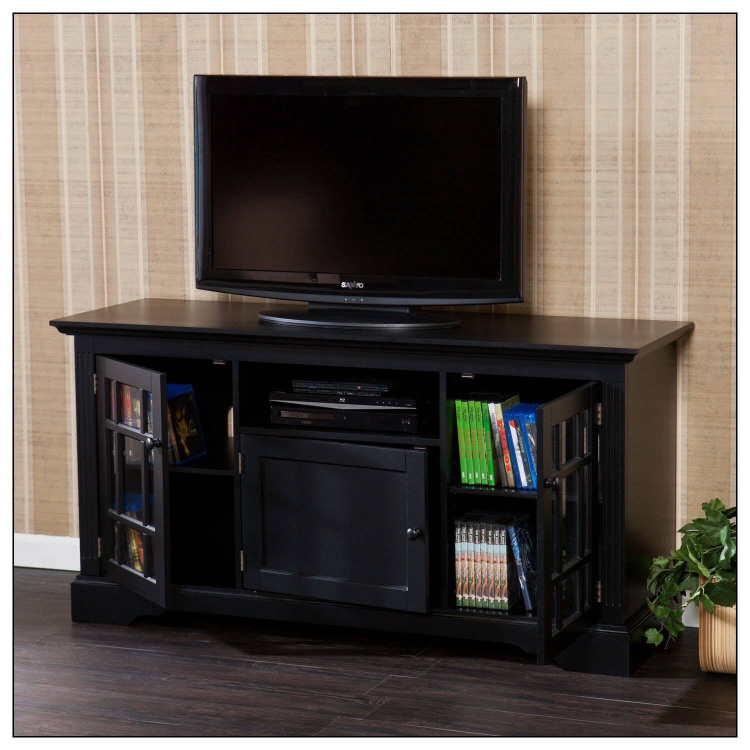Ensure durability. A black finish adds a stylish accent to your entertainment area.