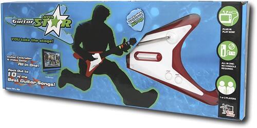 Leave the years of training and touring to the experts — you can have just as much guitar-playing glory at home with Guitar Super Star. Even if you've never picked up a guitar before, you can still rock out like a professional player. No experience is necessary; just plug the guitar controller into your TV and start following along by watching the screen. Before long, you'll be laying down killer riffs.The object of the game is simple: the better you play, the more points you earn. Turn out the tunes on your own for a personal best or take on a challenger in the exciting two-player mode. You'll recognize familiar guitar classics as you strive to prove your prowess. Included stickers help you create a customized look for your guitar controller, so everyone will see your personal style.