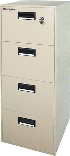 Store your important files in this SentrySafe 4B2100 fire file FIRE-SAFE that resists fire damage for up to an hour at 1700°F and also offers protection against water exposure. The recessed handles feature label holders for simple organization.