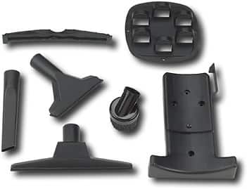Includes wall-mount bracket and an assortment of cleaning accessories and tools