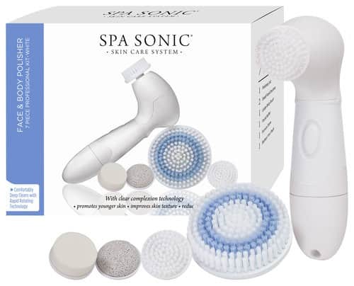 Beautify your skin with this Spa Sonic 00300 face and body polisher that features Rapid Rotating technology for effective dermal penetration and includes face and body brushes, a facial buffer and a pumice stone to smooth and exfoliate.