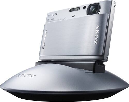 Easily document a party or event with this camera dock that automatically takes photos with your Sony DSCTX1 or DSCWX1 digital camera and employs face detection and smile shutter modes for optimal pictures. The dock tilts and shifts for great shots.