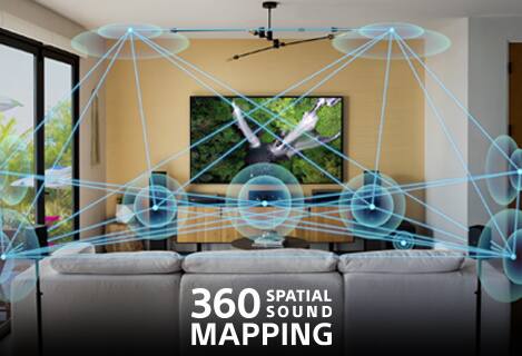 *Compatible rear speakers (SA-RS3S or SA-RS5) and a software update on the soundbar are required to enjoy 360 Spatial Sound by 360 Spatial Sound Mapping technology. Software update available now. Soundbar OTA (Over-The-Air) software update available now. Network connection required for software updates.