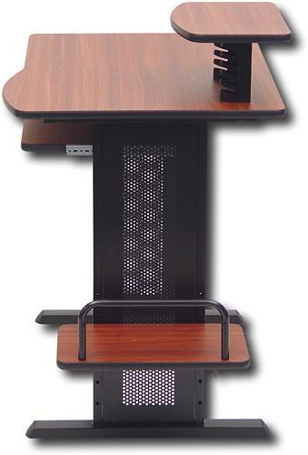 This attractive computer cart adds a nice finishing touch to any home office. It features a contoured desktop and keyboard shelf to maximize space.