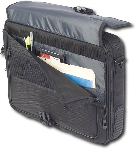 Protect your laptop from wear and tear with this laptop case that features durable polyester construction with nylon twill for a sturdy design. A padded compartment cushions your laptop.
