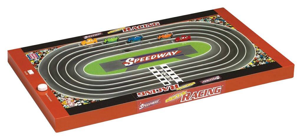 Race your child to the finish line with this Tudor Games Power Pro Speedway 8502 electric racing game that features a portable racetrack for versatile use. Adjustable cars allow your child to customize their performance for a winning edge.